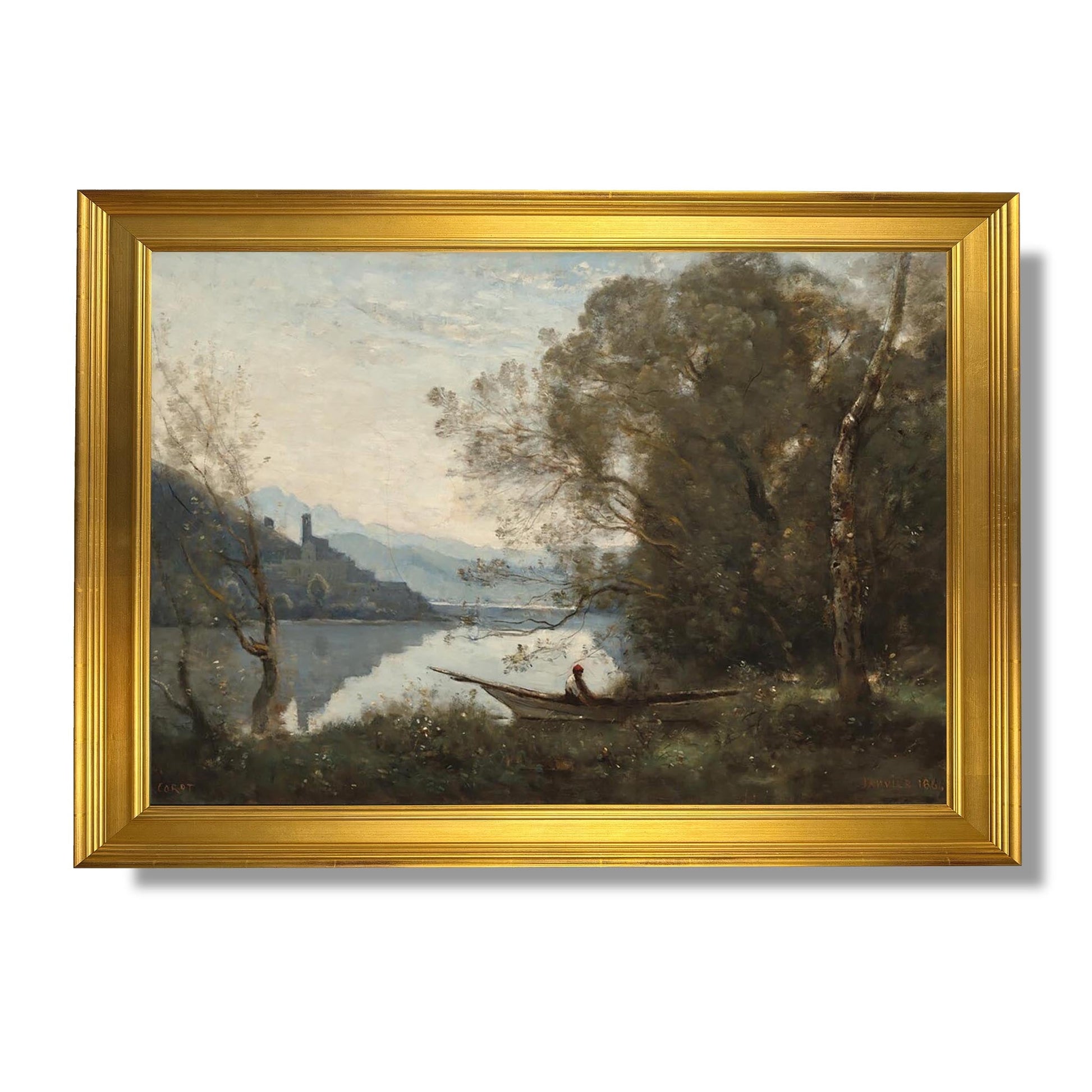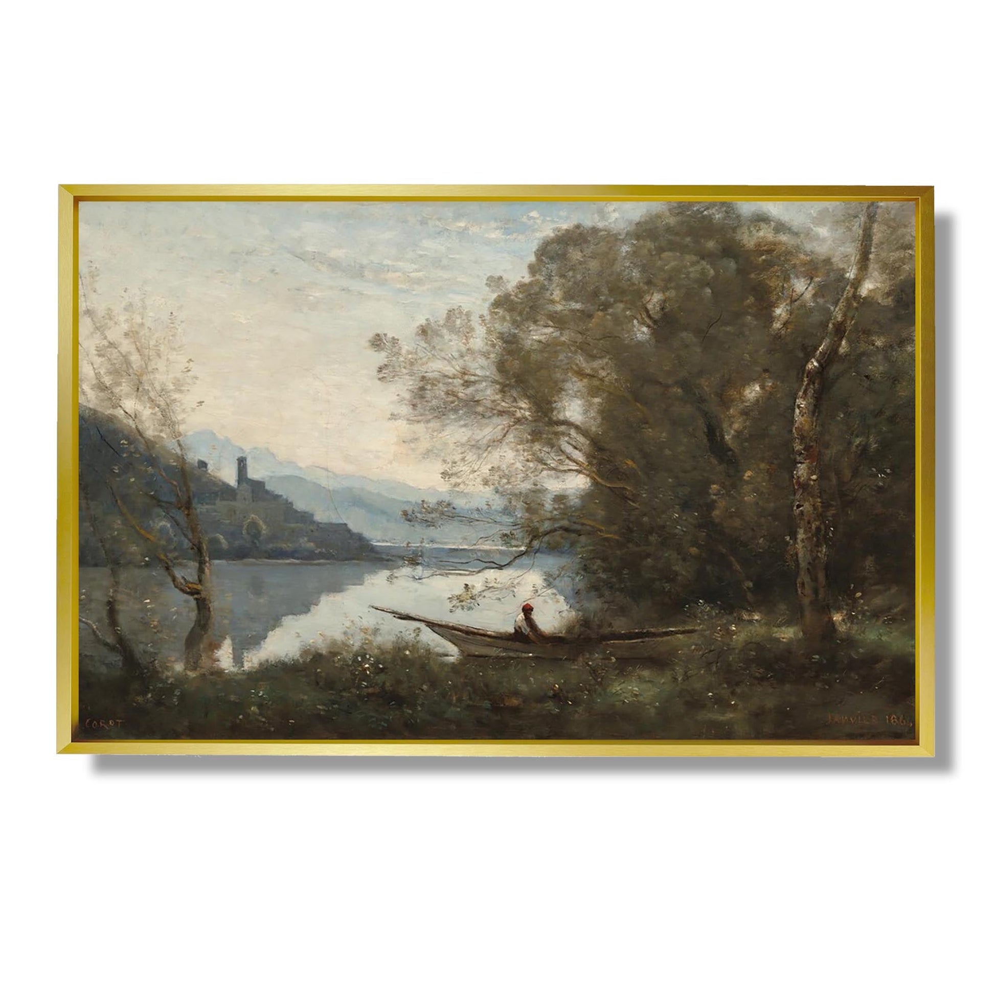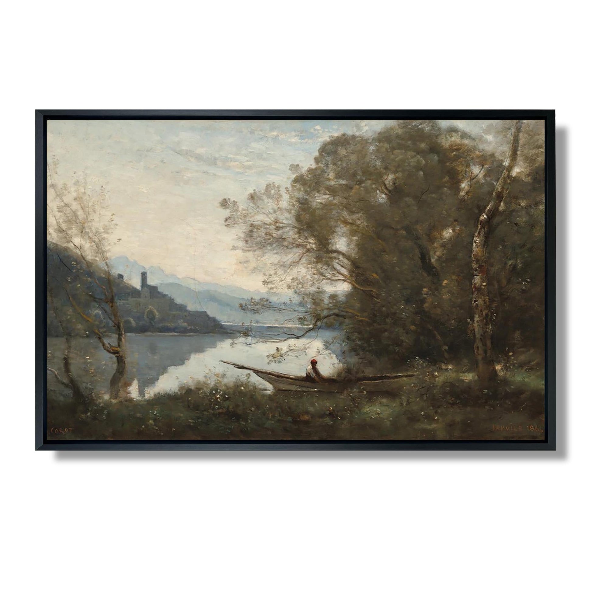 Le batelier amarré : Souvenir d'un lac italien - Jean-Baptiste-Camille Corot