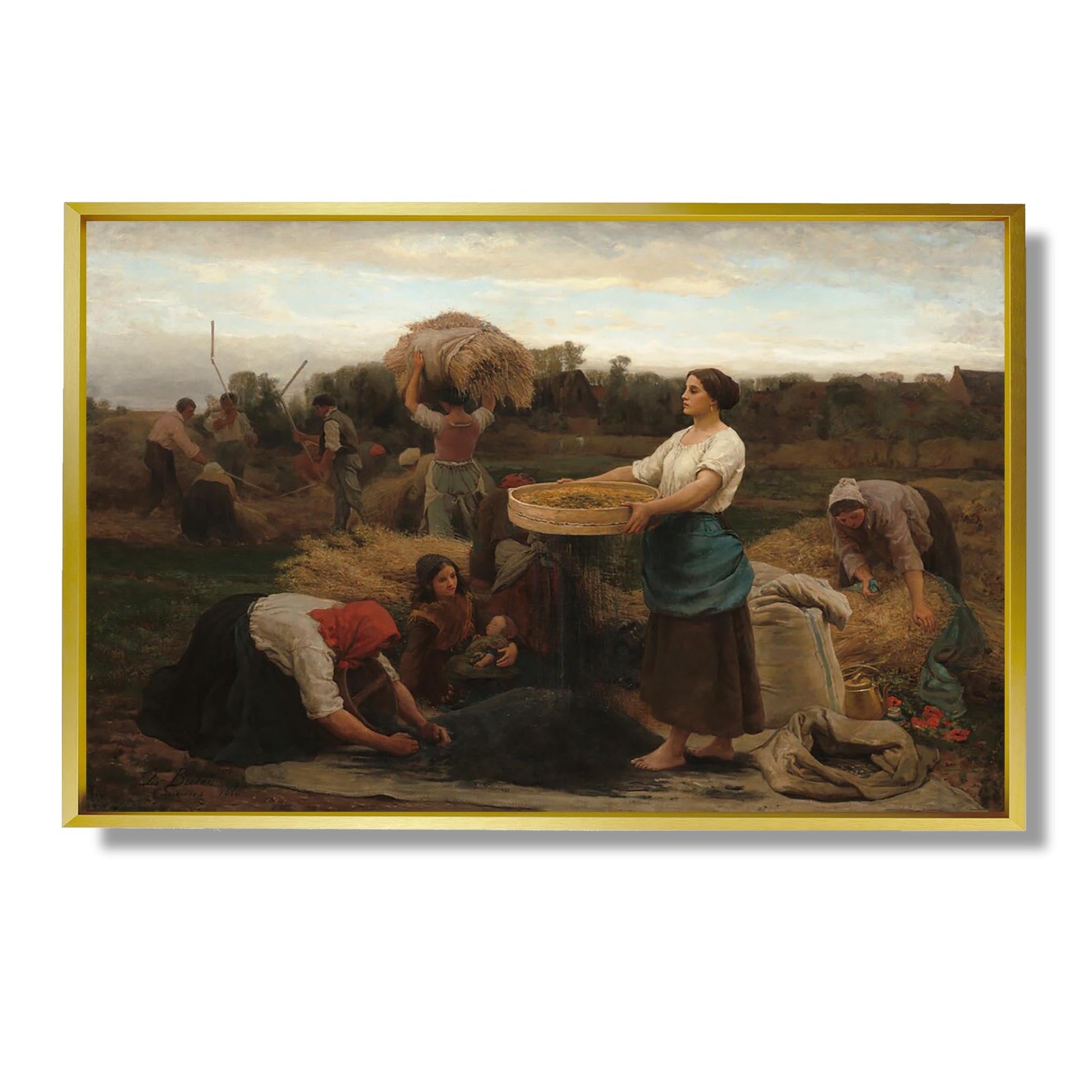 "Le Colza" (Récolte du Colza) est une œuvre emblématique de Jules Breton, un peintre français du XIXe siècle, connu pour ses représentations de la vie rurale. Dans ce tableau, Breton capture la beauté des champs de colza en fleurs, symbolisant la richesse de la nature et le travail des paysans. La lumière dorée du soleil illumine les visages des travailleurs, évoquant une atmosphère de sérénité et de communion avec la terre. L'œuvre témoigne de l'harmonie entre l'homme et son environnement, tout en célébrant le labeur et la simplicité de la vie agricole. C'est une ode à la ruralité et à la beauté des saisons.