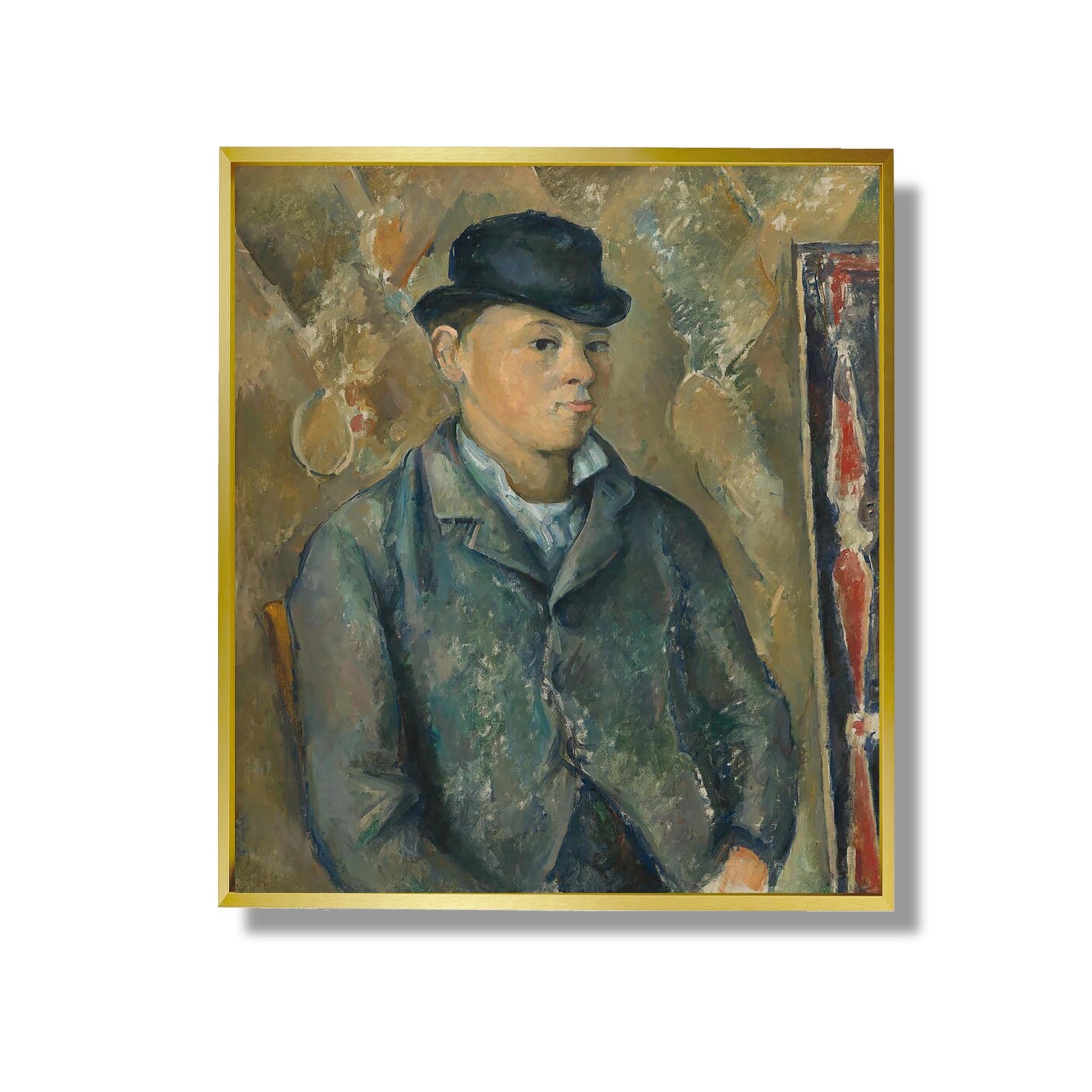 "Le Fils de l'artiste" est une œuvre emblématique de Paul Cézanne, peinte en 1896. Ce tableau représente son fils, Paul, dans une pose contemplative, illustrant la relation intime entre l'artiste et son enfant. Cézanne, pionnier du passage vers la modernité, utilise des couleurs vibrantes et des formes géométriques pour créer une atmosphère à la fois réaliste et symbolique. L'œuvre témoigne de l'évolution de son style, mêlant impressionnisme et post-impressionnisme. À travers ce portrait, Cézanne explore les thèmes de la famille, de l'identité et de la perception, tout en affirmant son rôle central dans l'histoire de l'art.