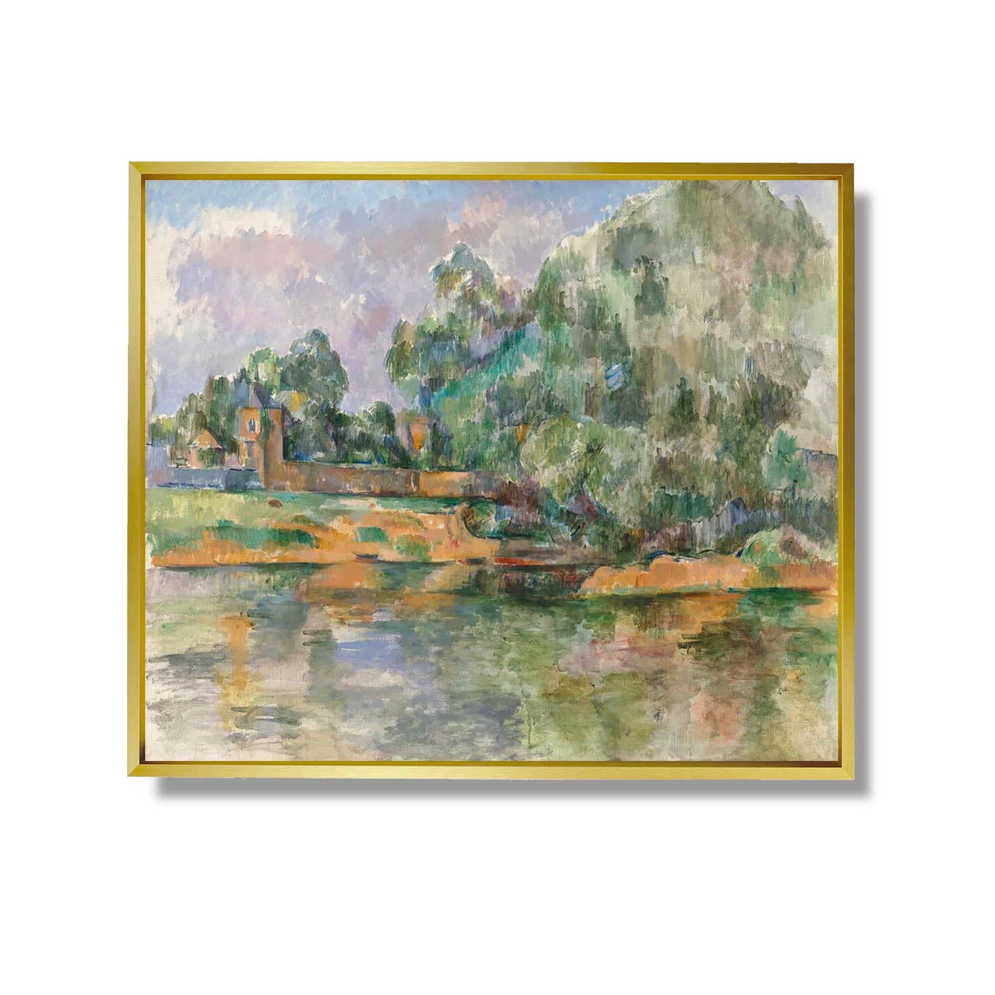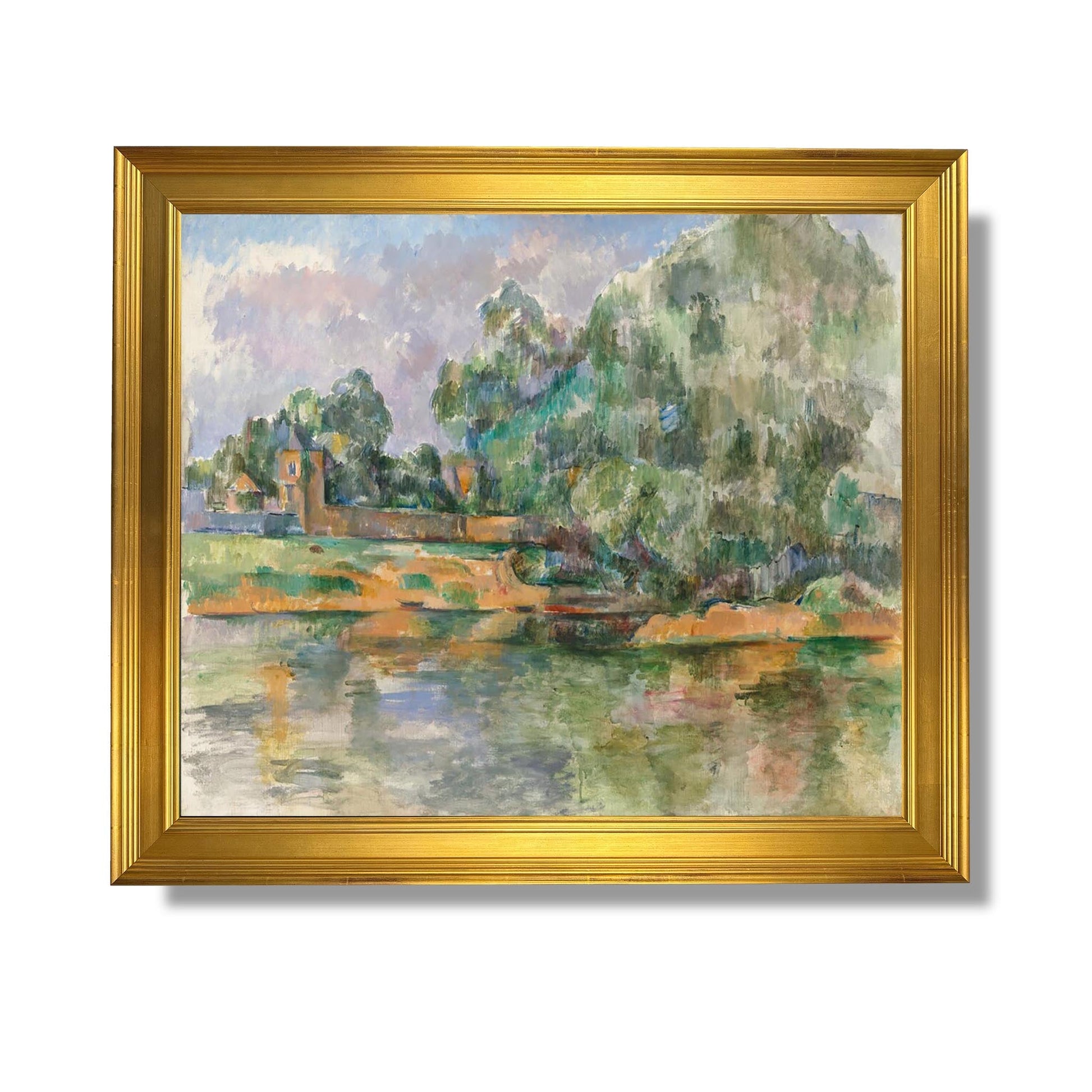 "Les bords de Seine à Médan" est une œuvre emblématique de Paul Cézanne, peinte en 1880. Ce tableau illustre la transition du post-impressionnisme vers le cubisme, caractéristique du style unique de l'artiste. Cézanne y capture la beauté des paysages français avec des touches de couleur vibrantes et des formes géométriques. La Seine, serpentant à travers le paysage, est entourée d'arbres et de collines, créant une atmosphère paisible. L'œuvre témoigne de l'importance de la nature dans l'art de Cézanne, tout en explorant la perception et la structure, éléments fondamentaux de son approche artistique.
