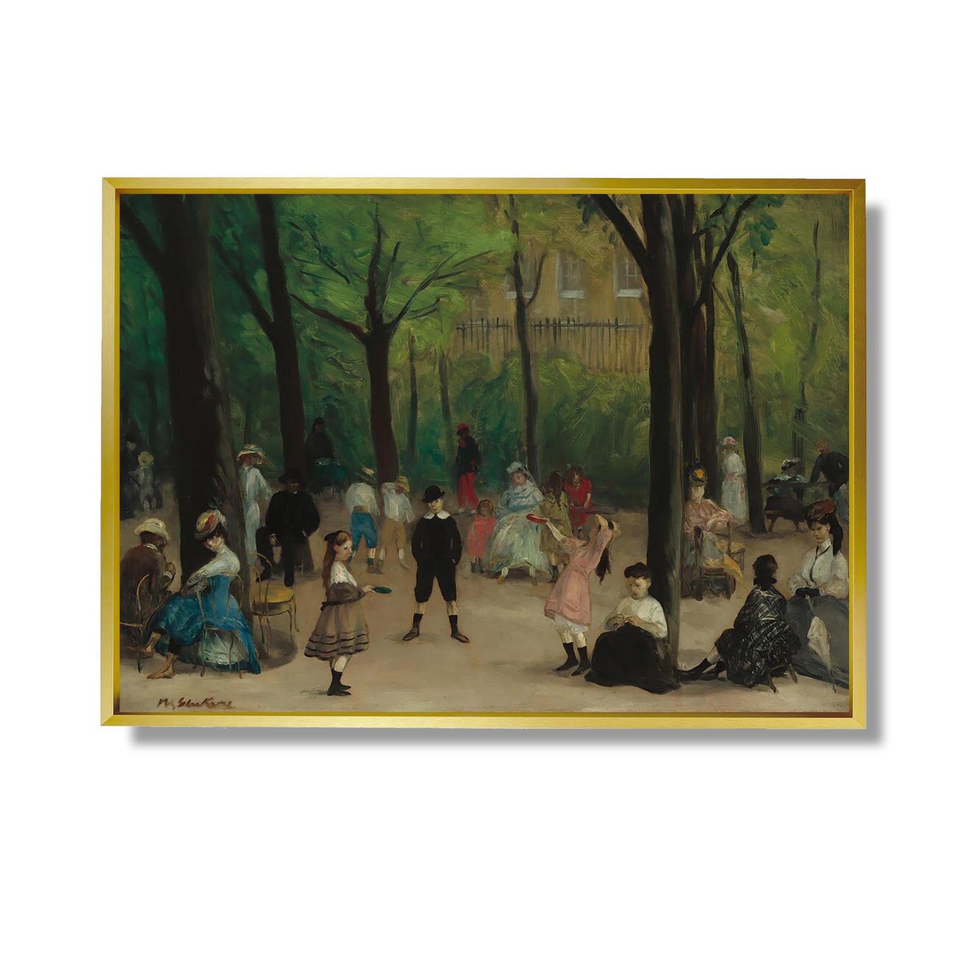 William James Glackens, peintre américain du début du XXe siècle, est connu pour son style impressionniste vibrant et sa capacité à capturer la vie quotidienne. Dans son œuvre "Luxembourg Gardens", il dépeint les célèbres jardins parisiens avec une palette lumineuse et des coups de pinceau dynamiques. La toile évoque une atmosphère de détente et de convivialité, où les promeneurs, les enfants et les couples se mêlent dans un cadre verdoyant. Glackens réussit à transmettre l'énergie de la vie urbaine tout en célébrant la beauté des moments simples, faisant de cette œuvre un témoignage de son talent et de son sens de l'observation.