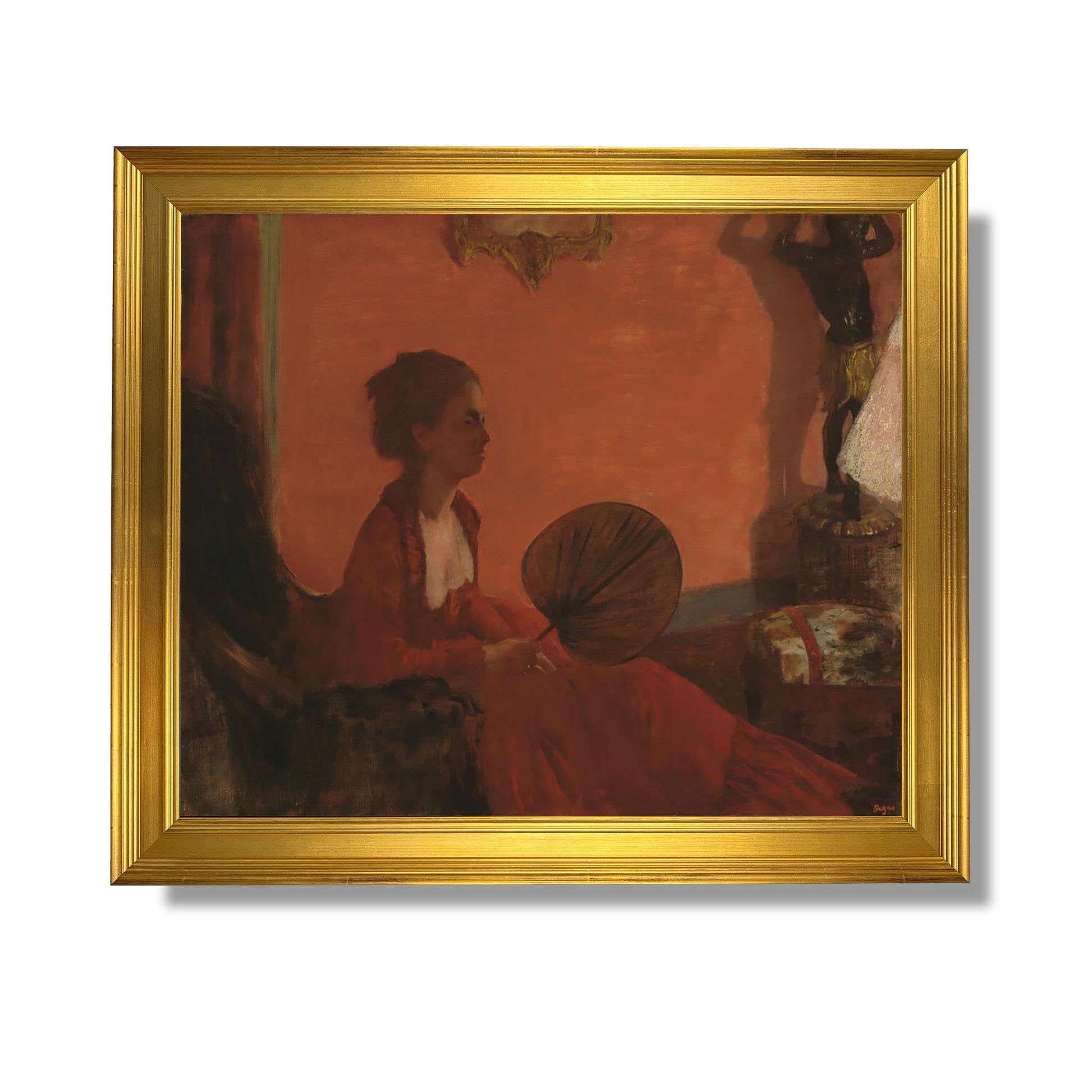 "Madame Camus" est une œuvre emblématique d'Edgar Degas, réalisée en 1879. Ce portrait représente la femme de l'artiste, une figure centrale dans son univers artistique. Degas, connu pour sa maîtrise du mouvement et de la lumière, capture ici l'élégance et la grâce de Madame Camus, tout en jouant sur les textures et les couleurs. Le tableau se distingue par son approche intimiste, révélant la personnalité de son modèle à travers des détails subtils. Cette œuvre illustre parfaitement le style impressionniste de Degas, mêlant réalisme et sensibilité, tout en témoignant de son intérêt pour la vie quotidienne et les relations humaines.