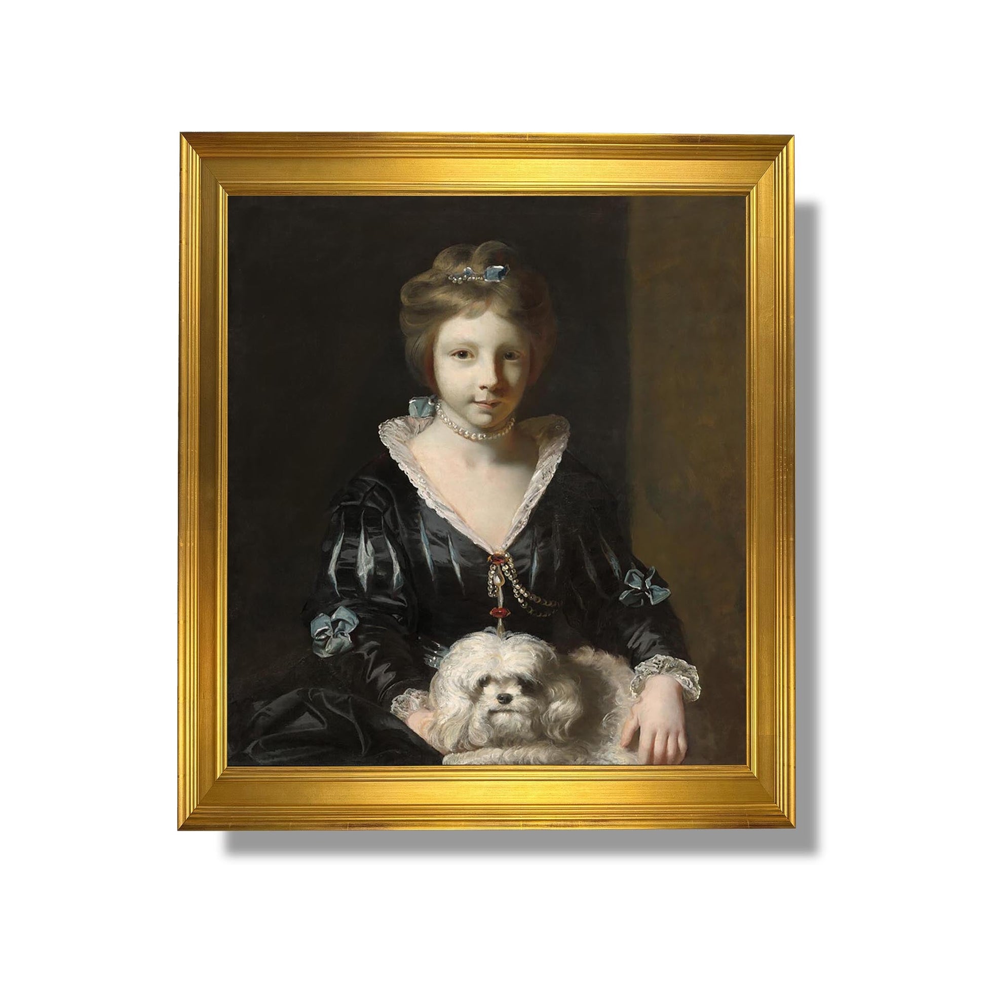 "Miss Beatrix Lister" est un portrait emblématique réalisé par Sir Joshua Reynolds, un maître du portrait britannique du XVIIIe siècle. Cette œuvre, peinte en 1756, capture la grâce et l'élégance de la jeune Beatrix, fille d'un aristocrate. Reynolds utilise une palette douce et des jeux de lumière subtils pour mettre en valeur la délicatesse du visage et la richesse des vêtements de la sitte. Le tableau illustre non seulement le talent de Reynolds pour représenter la beauté féminine, mais aussi son habileté à transmettre le statut social de ses sujets. Ce portrait demeure un exemple marquant du style rococo et de l'art de la portraiture de l'époque.