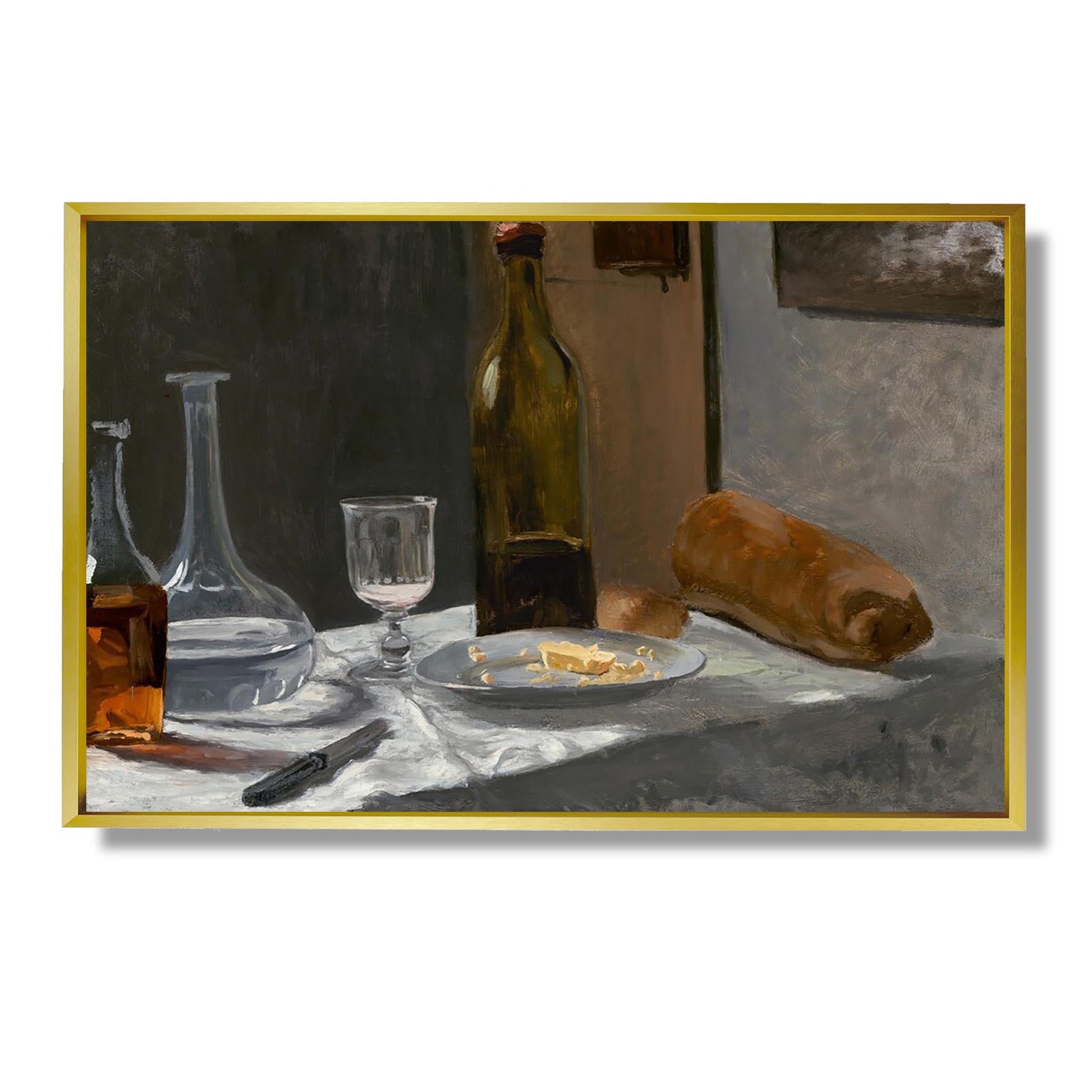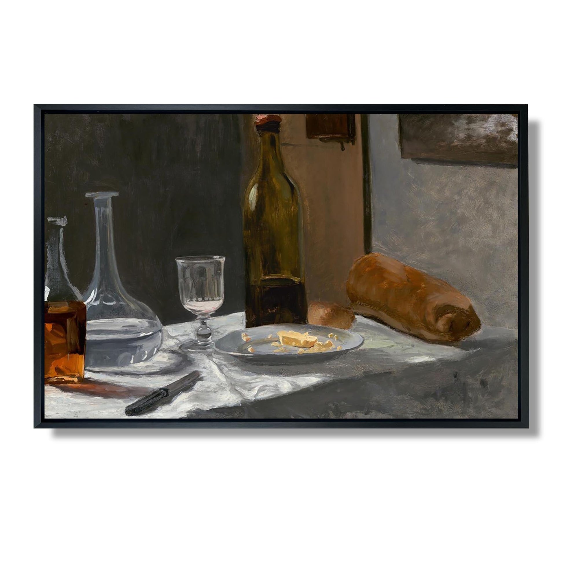 Nature morte avec bouteille, carafe, pain et vin - Claude Monet
