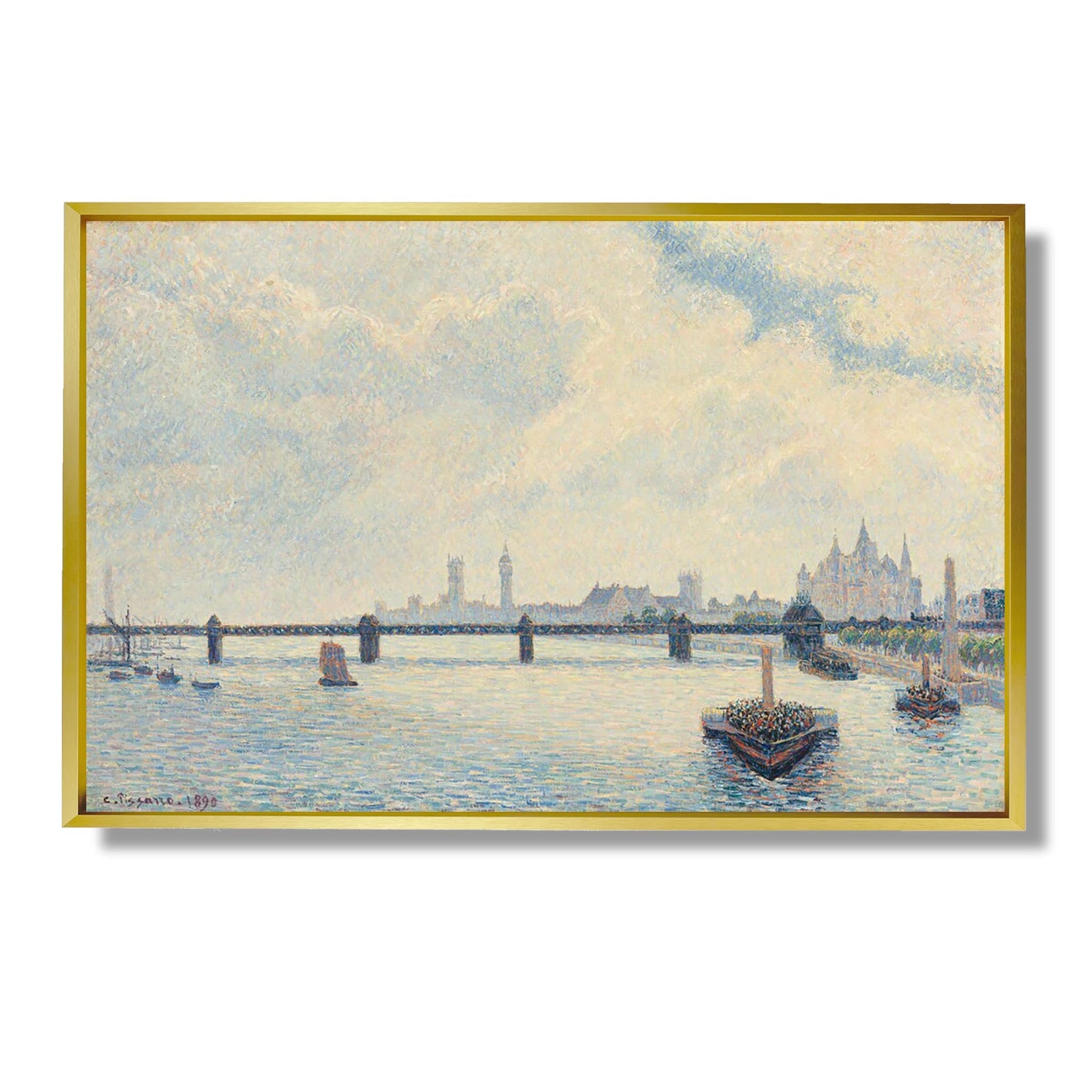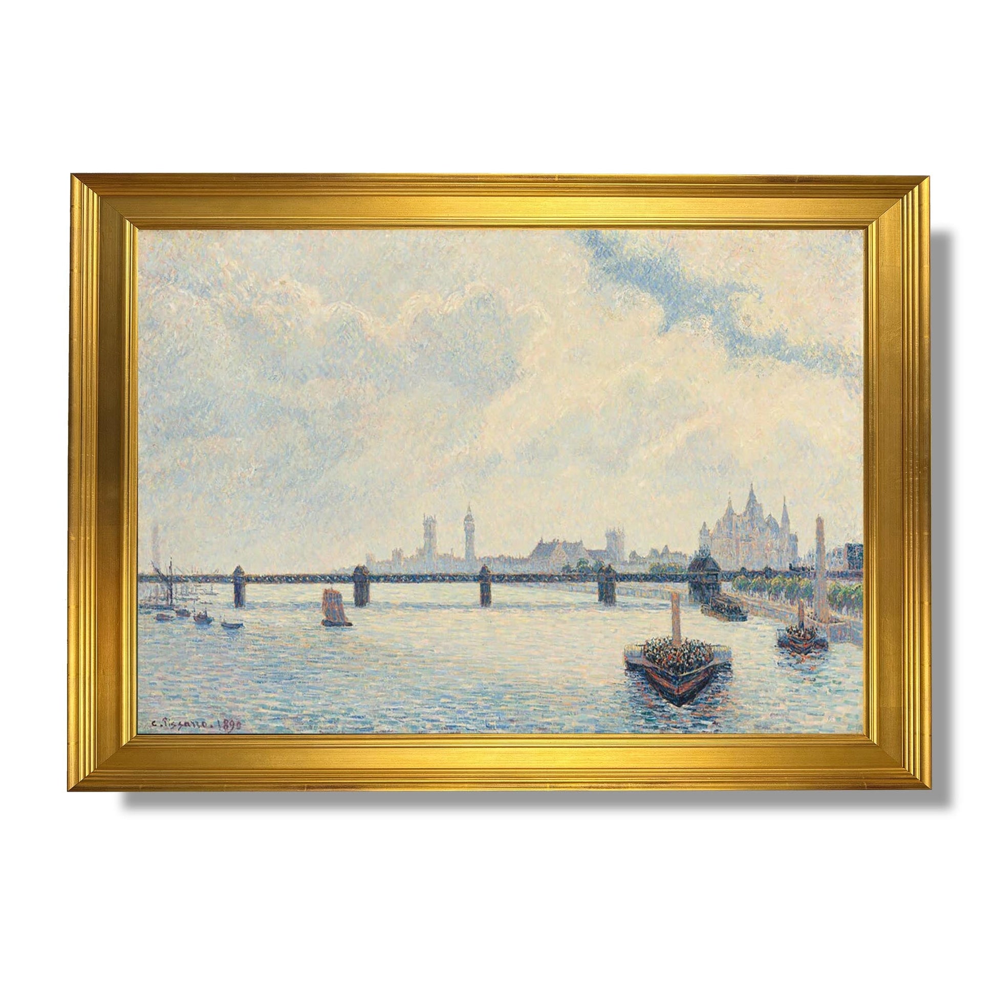 Le "Pont de Charing Cross" est une œuvre emblématique de Camille Pissarro, peinte en 1890. Ce tableau impressionniste capture la vie urbaine londonienne avec une lumière vibrante et des couleurs éclatantes. Pissarro, maître de la technique du plein air, dépeint le pont animé par des passants, des voitures et des bateaux, créant une atmosphère dynamique. La composition, avec ses perspectives et ses reflets sur l'eau, témoigne de son intérêt pour la modernité et le mouvement. Cette œuvre illustre parfaitement la capacité de Pissarro à immortaliser des moments fugaces de la vie quotidienne.