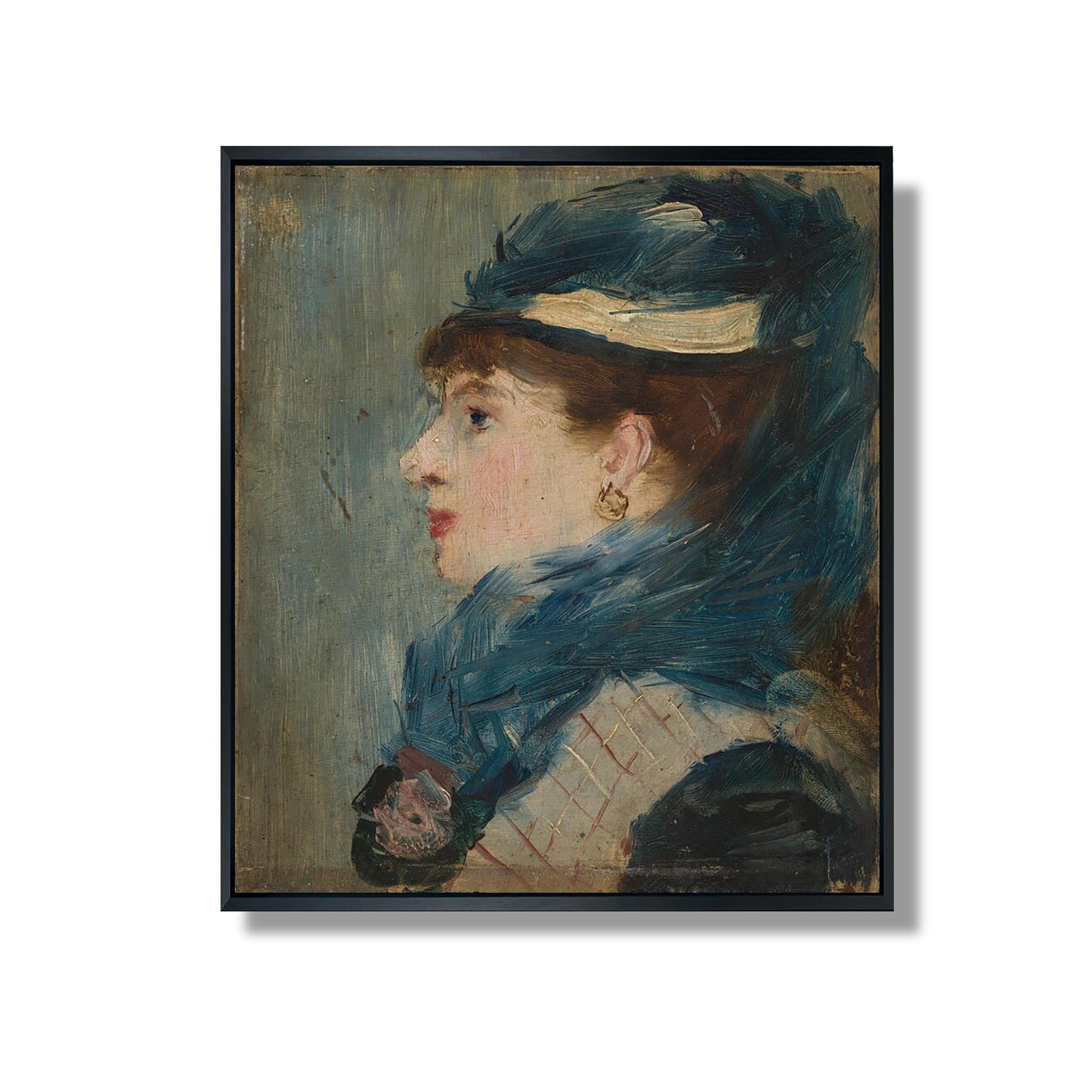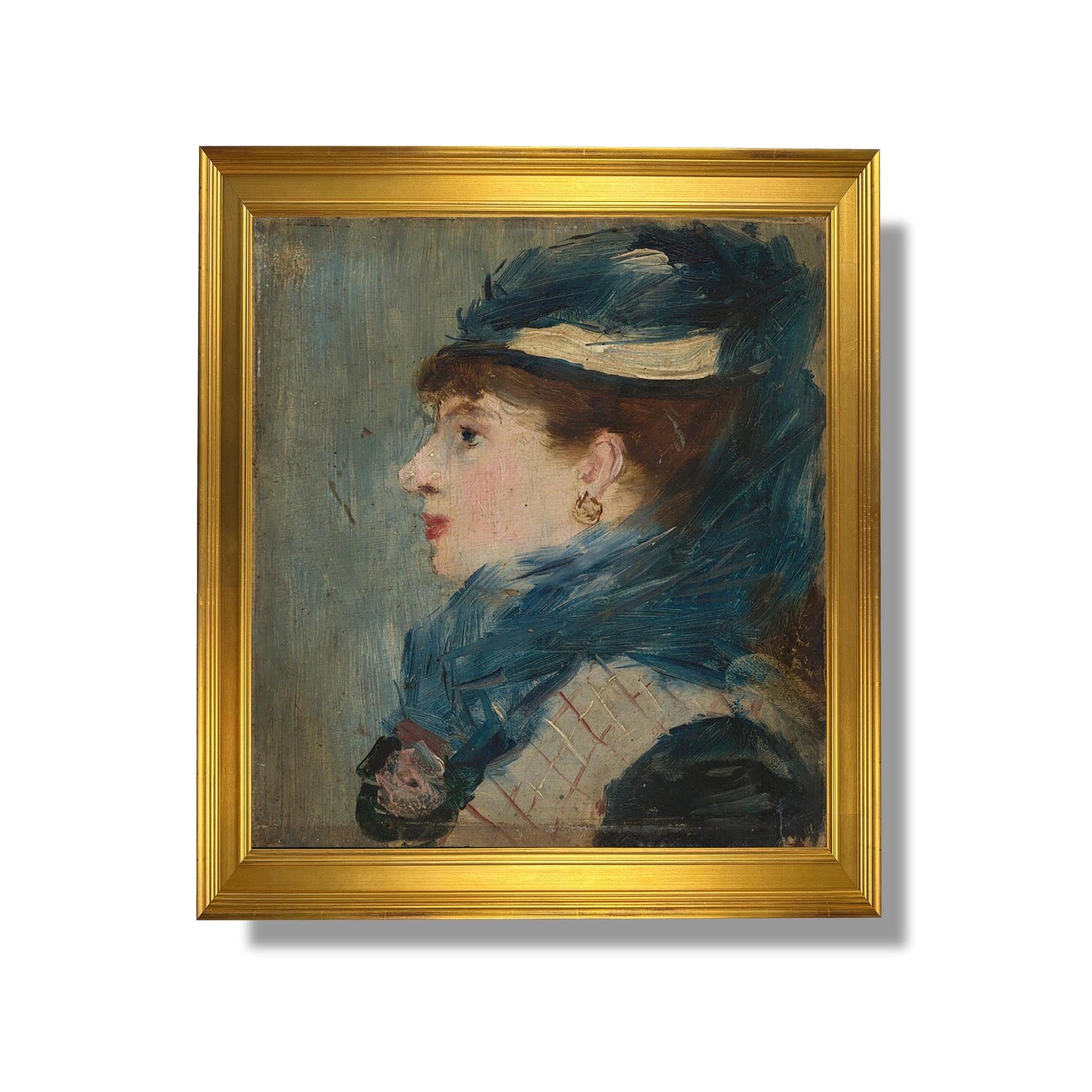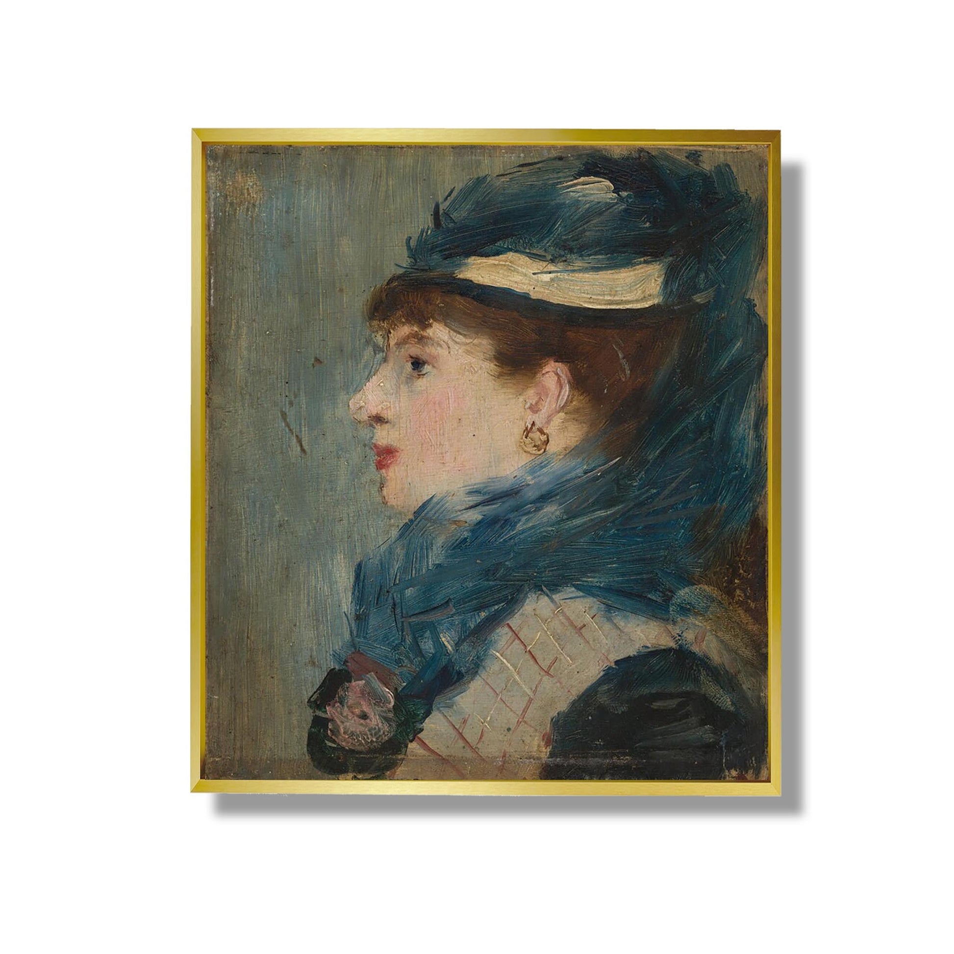 "Portrait d'une Dame" d'Édouard Manet, réalisé en 1879, est une œuvre emblématique qui illustre le style audacieux de l'artiste. Ce tableau représente une femme élégante, vêtue d'une robe noire, se tenant avec assurance. Manet, connu pour sa capacité à capturer la modernité, utilise des coups de pinceau rapides et une palette de couleurs sombres pour créer une atmosphère à la fois intime et mystérieuse. Le regard direct de la dame engage le spectateur, tandis que le fond flou accentue sa présence. Cette œuvre témoigne de l'évolution du portrait au XIXe siècle, mêlant réalisme et impressionnisme.