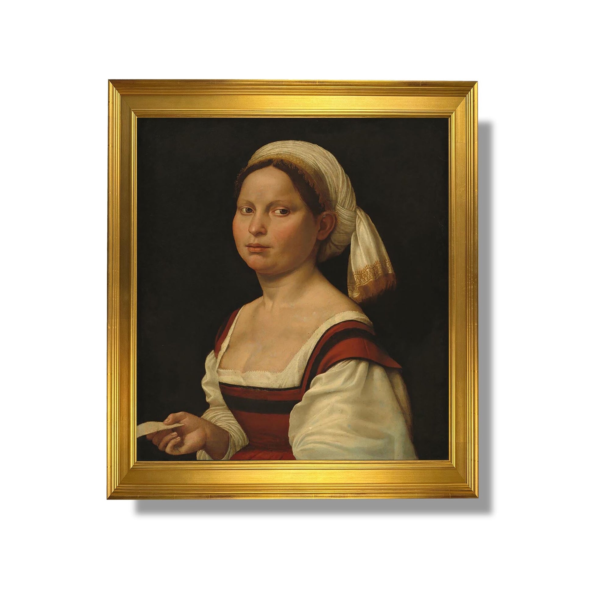 Giuliano Bugiardini, peintre de la Renaissance italienne, est connu pour son style délicat et ses portraits raffinés. Dans son œuvre "Portrait d'une jeune femme", il capture l'élégance et la grâce d'une figure féminine, probablement d'origine aristocratique. La composition met en avant des détails minutieux, tels que les textures des vêtements et l'expression douce du visage. La lumière douce et les couleurs harmonieuses créent une atmosphère intimiste, révélant la personnalité du modèle. Ce tableau illustre l'habileté de Bugiardini à allier réalisme et idéalisation, témoignant de son talent dans l'art du portrait.
