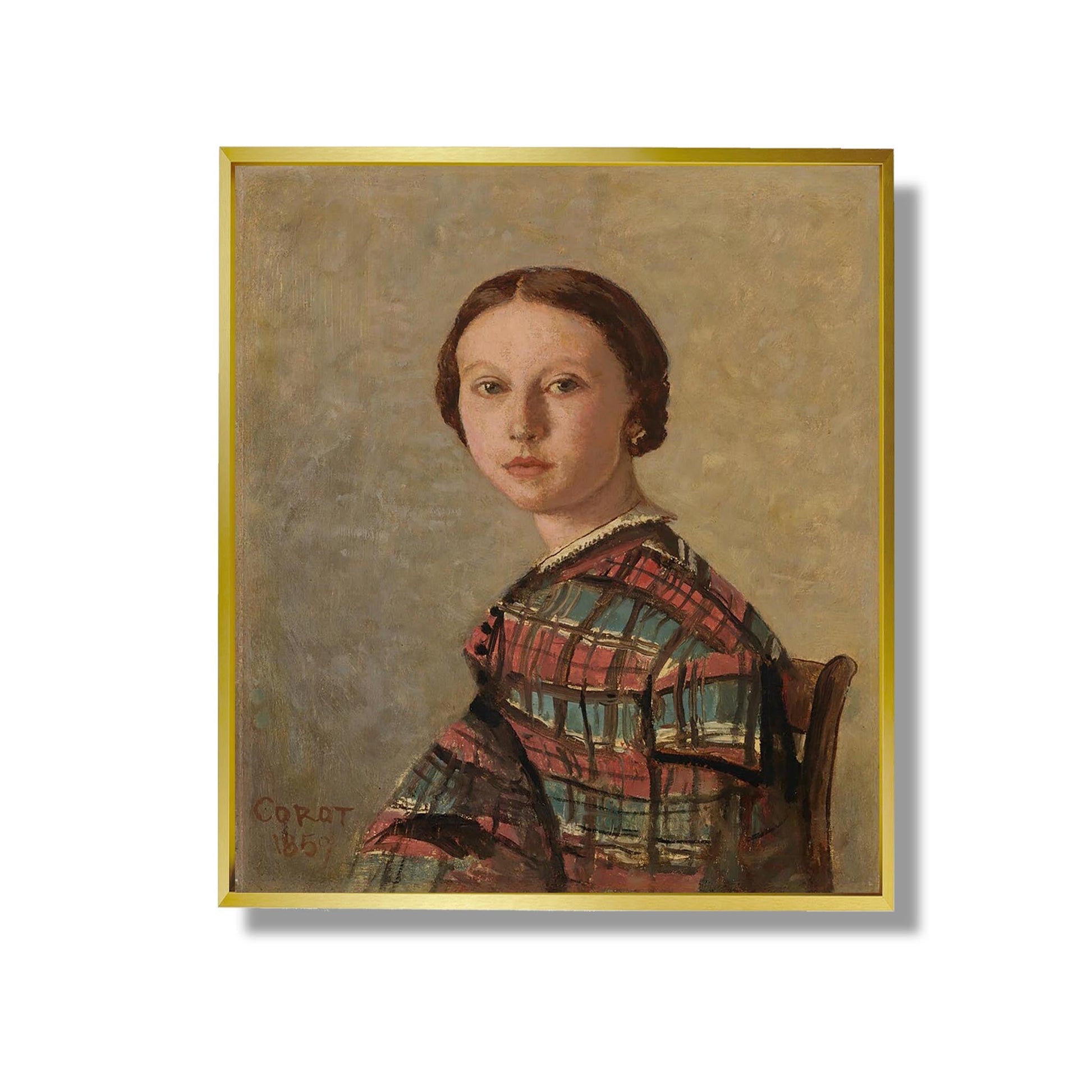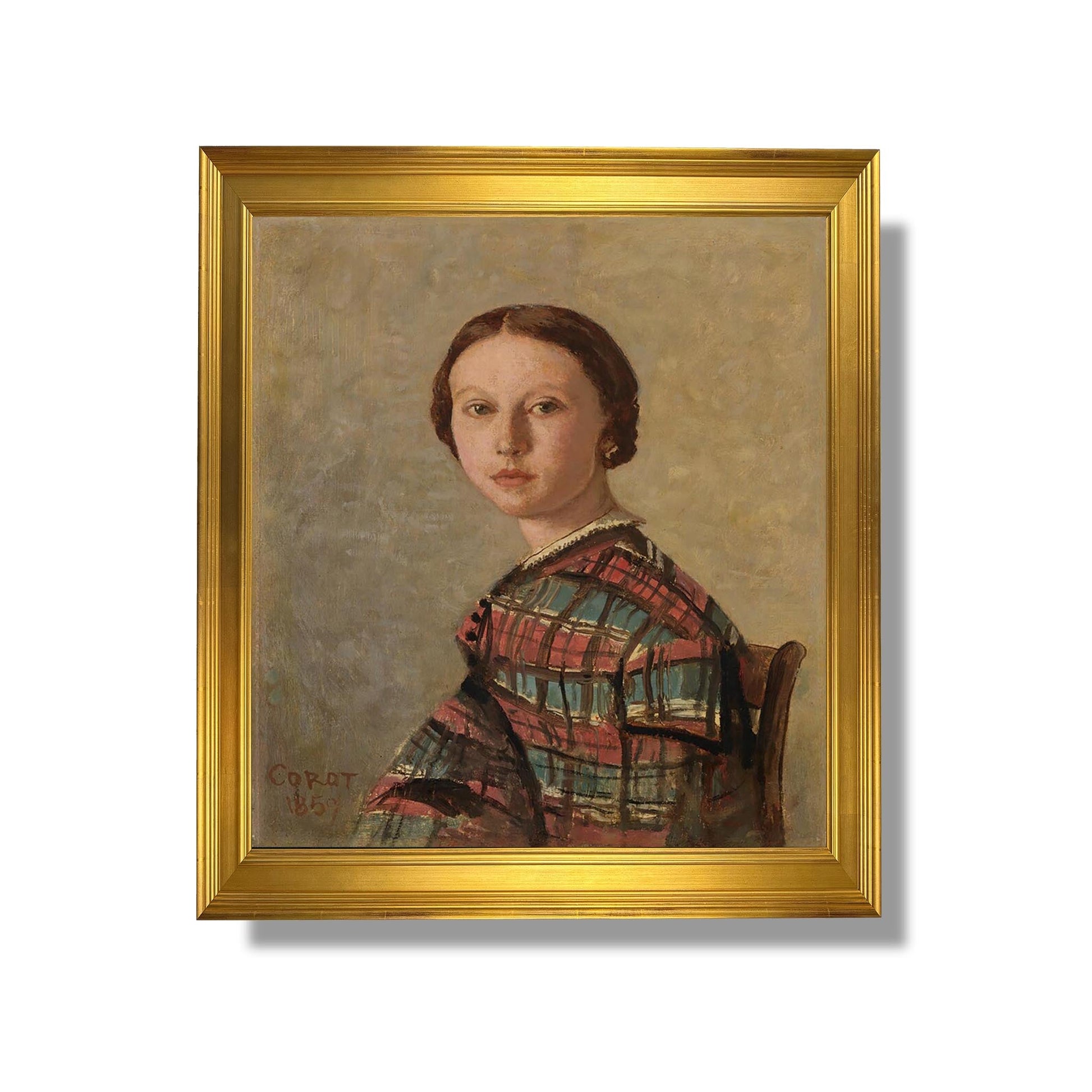 "Portrait d'une Jeune Femme" de Jean-Baptiste-Camille Corot est une œuvre emblématique du XIXe siècle, illustrant le passage du néoclassicisme à l'impressionnisme. Réalisé en 1874, ce tableau capture la beauté délicate d'une jeune femme, vêtue d'une robe simple, dans un cadre naturel. La lumière douce et les couleurs pastel créent une atmosphère intimiste, révélant la sensibilité de l'artiste pour les nuances de la nature et des émotions humaines. Corot, maître du paysage, réussit ici à fusionner portrait et nature, témoignant de son style unique et de son influence sur les générations futures d'artistes.