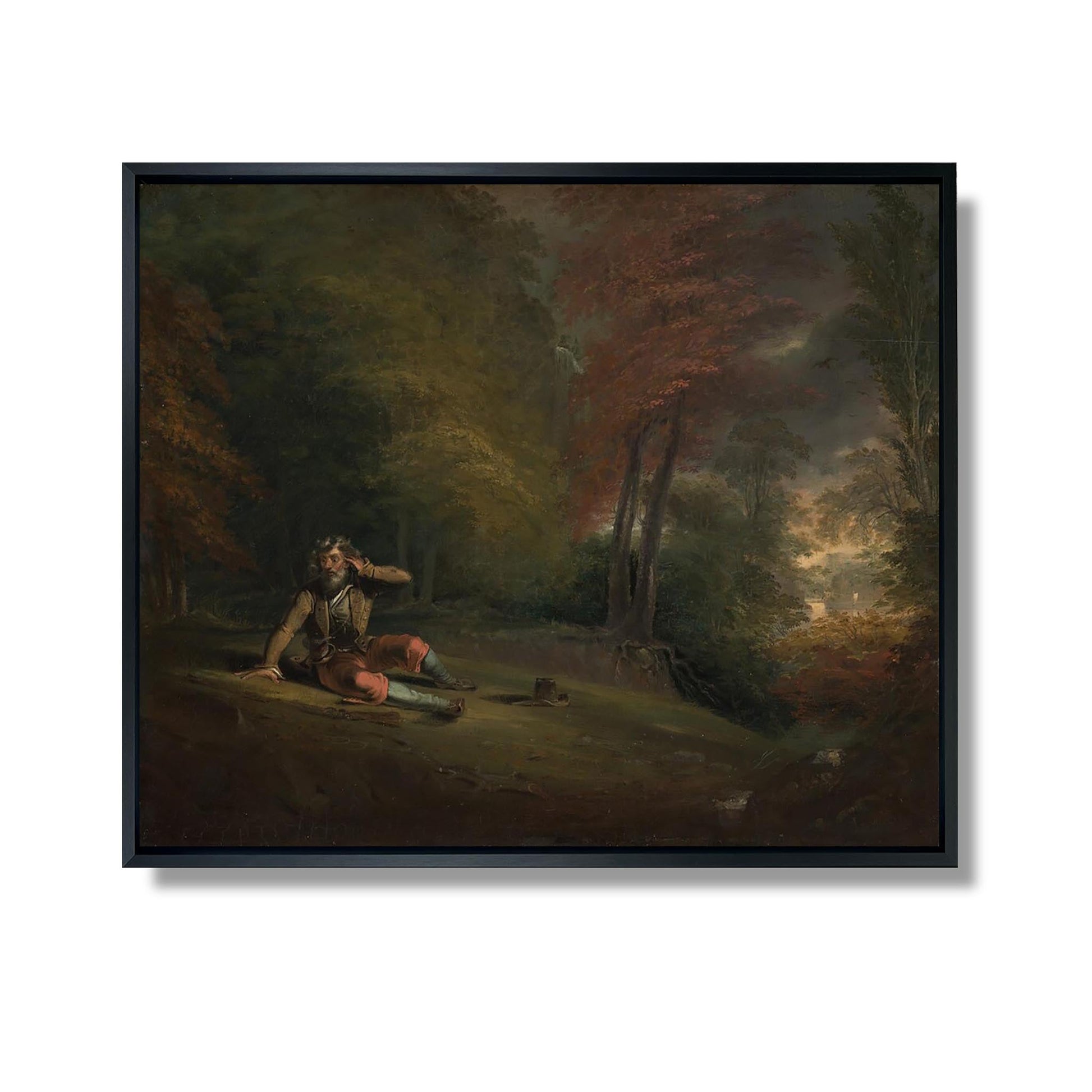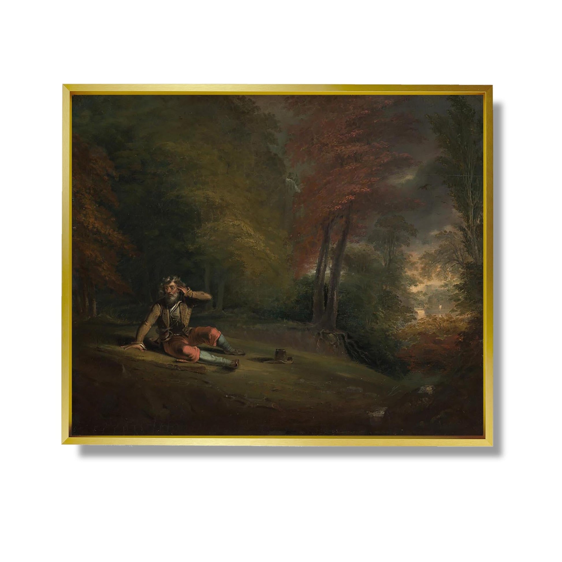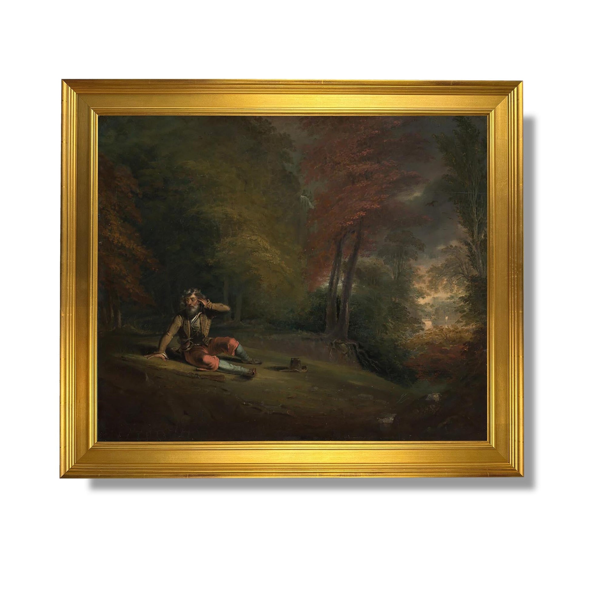 "Rip Van Winkle Awakening from his Long Sleep" est une œuvre emblématique de l'artiste américain Henry Inman, réalisée en 1849. Elle illustre le célèbre personnage de Rip Van Winkle, issu de la nouvelle de Washington Irving, qui s'endort pendant la Révolution américaine et se réveille des décennies plus tard. Inman capture le moment de l'éveil de Rip, mêlant réalisme et romantisme. L'expression de surprise et de désorientation sur le visage de Rip reflète les changements sociaux et politiques de son époque. Cette peinture évoque des thèmes de temps, d'identité et de nostalgie, tout en célébrant l'esprit américain.