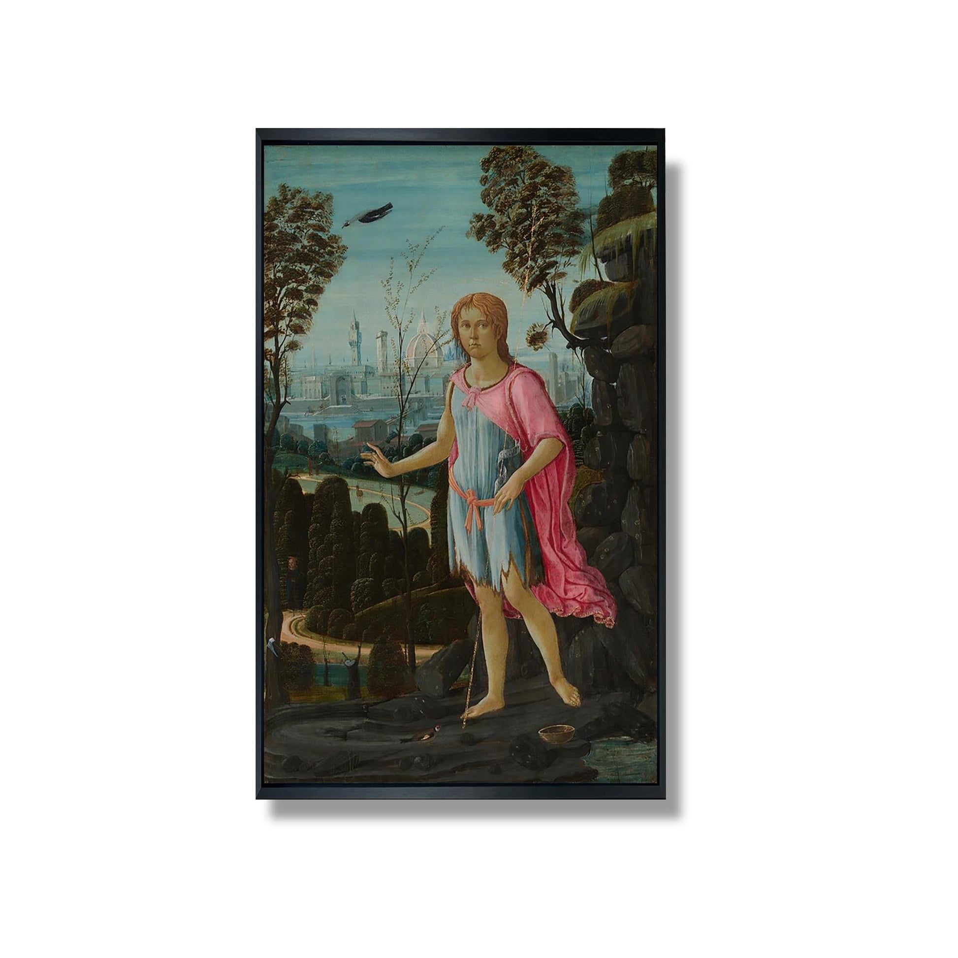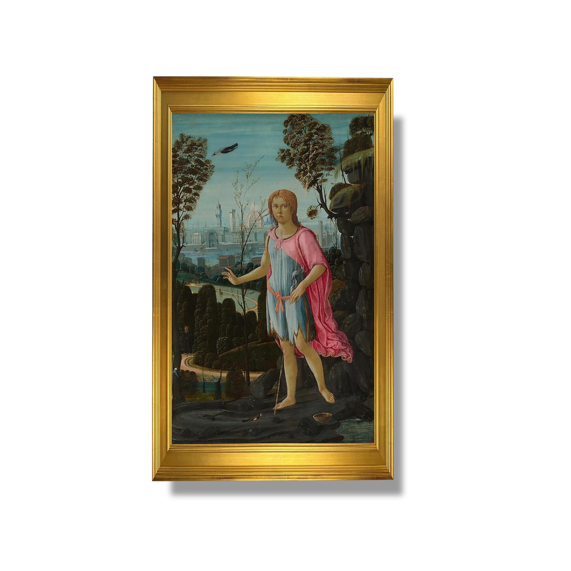 L'œuvre "Saint Jean Baptiste" de Jacopo del Sellaio, réalisée au XVe siècle, illustre la maîtrise de l'artiste dans la représentation des figures religieuses. Ce tableau met en avant Saint Jean Baptiste, souvent associé à la prédication et à la préparation de la venue du Christ. Del Sellaio utilise des couleurs vives et des détails minutieux pour capturer l'intensité spirituelle du saint. La composition, équilibrée et harmonieuse, reflète l'influence de la Renaissance florentine. L'œuvre témoigne de la capacité de l'artiste à allier tradition et innovation, tout en transmettant un message de foi et de dévotion.