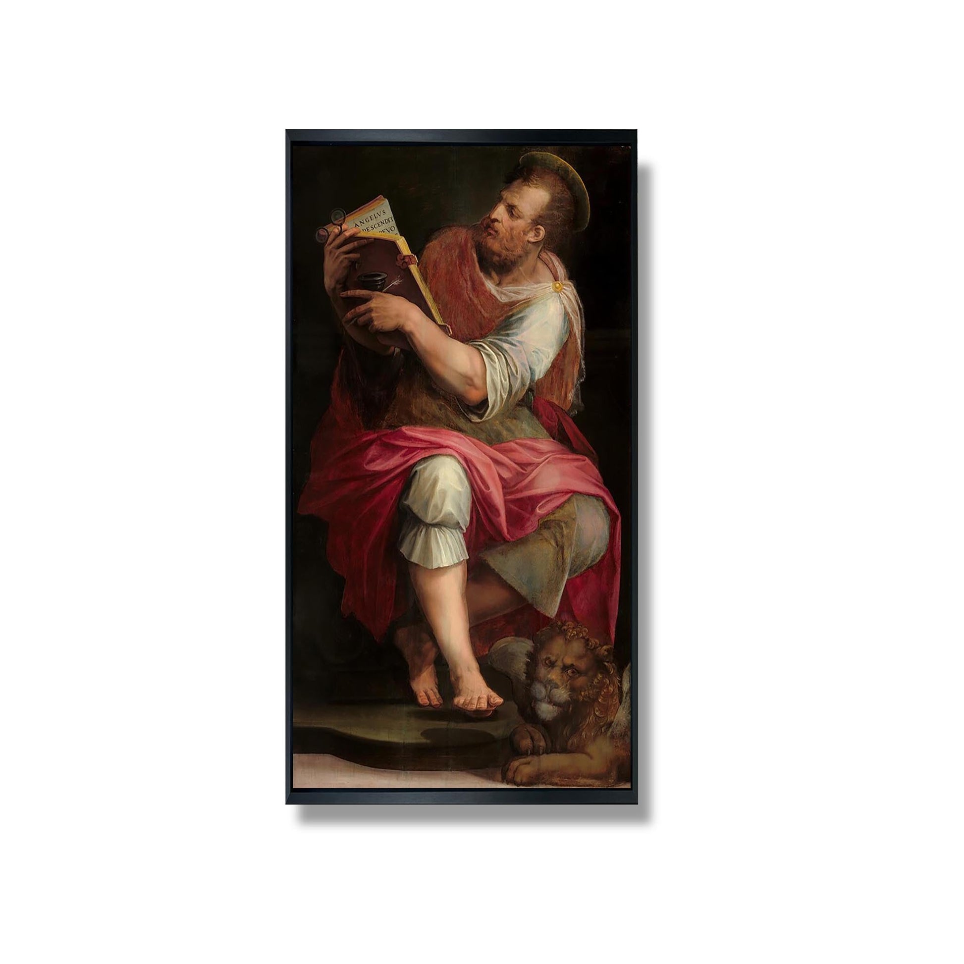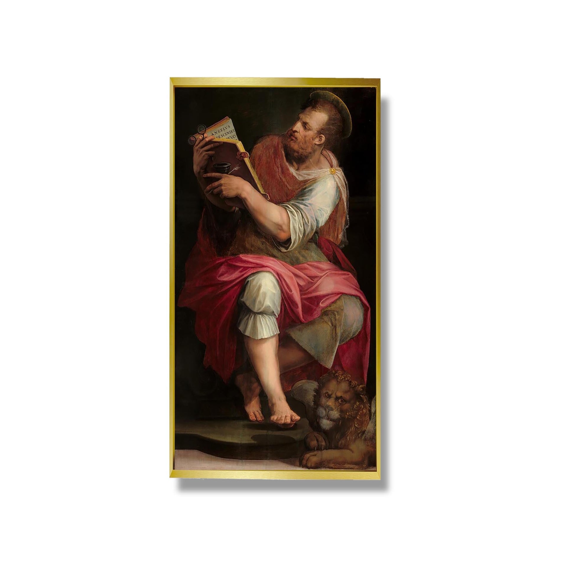L'œuvre "Saint Marc" de Giorgio Vasari, réalisée au XVIe siècle, illustre la maîtrise de l'artiste dans la représentation de figures religieuses. Cette peinture, qui fait partie d'un ensemble de fresques, dépeint Saint Marc, le patron de Venise, en pleine action, tenant son évangile. Vasari utilise des couleurs vives et des détails minutieux pour capturer l'essence spirituelle du saint. L'œuvre témoigne de l'influence de la Renaissance, mêlant humanisme et dévotion. Par son style dynamique et sa composition équilibrée, Vasari parvient à transmettre une profonde émotion, rendant hommage à la foi chrétienne et à l'identité vénitienne.