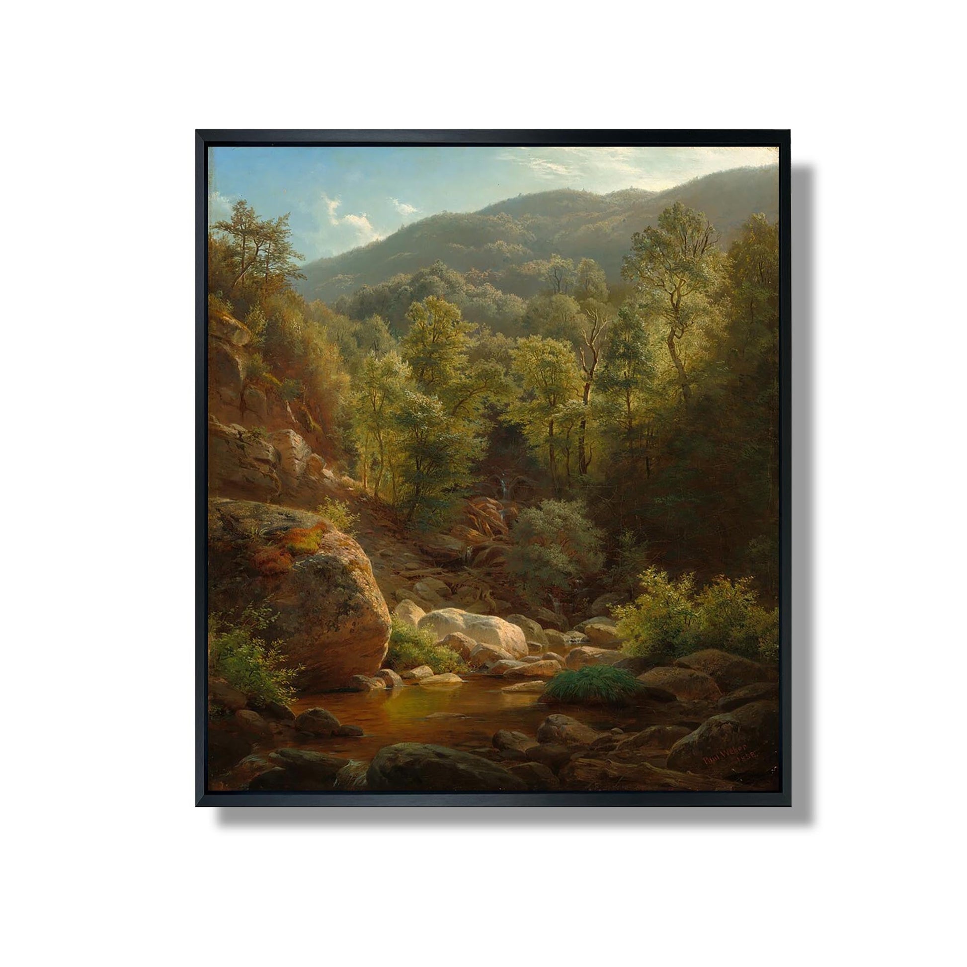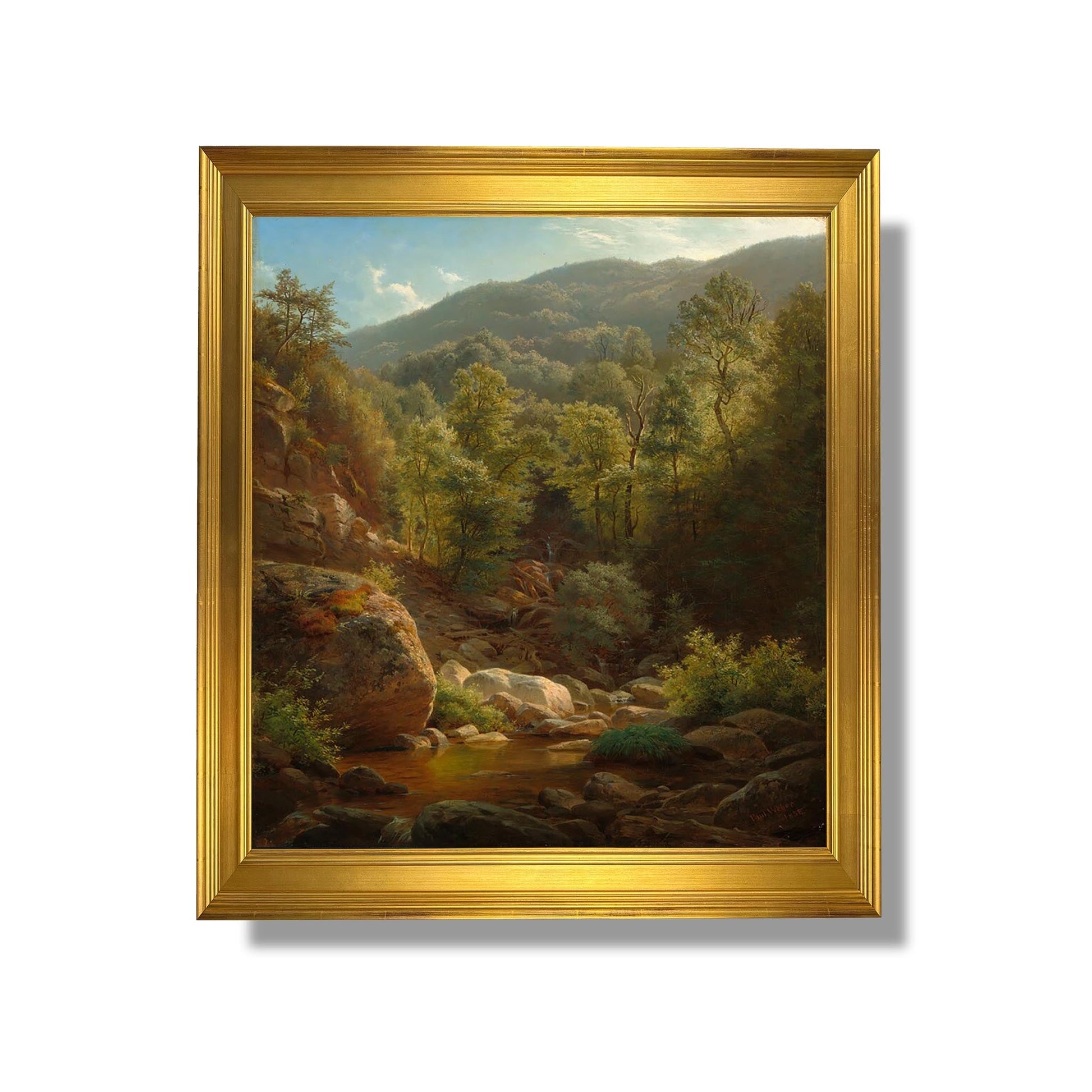 "Scene in the Catskills" de Paul Weber est une œuvre emblématique du paysage américain du XIXe siècle. Peint en 1860, ce tableau capture la beauté sauvage des montagnes des Catskills, en mettant en avant la lumière naturelle et les nuances de la nature. Weber, un artiste influencé par le mouvement romantique, utilise des couleurs vibrantes et des détails minutieux pour évoquer une atmosphère de sérénité et de majesté. La composition, avec ses arbres majestueux et son ciel dramatique, invite le spectateur à s'immerger dans ce paysage idyllique, témoignant de l'harmonie entre l'homme et la nature.