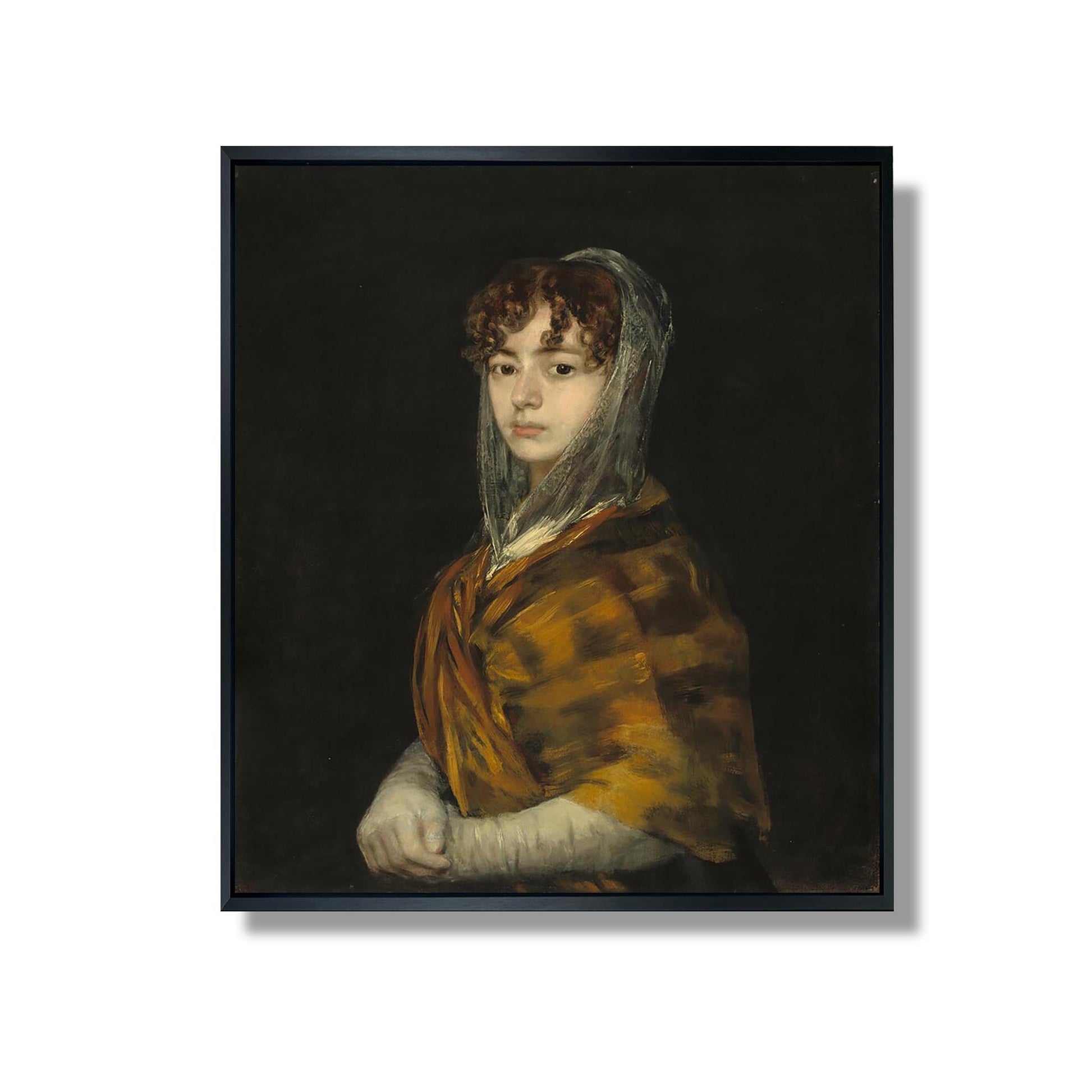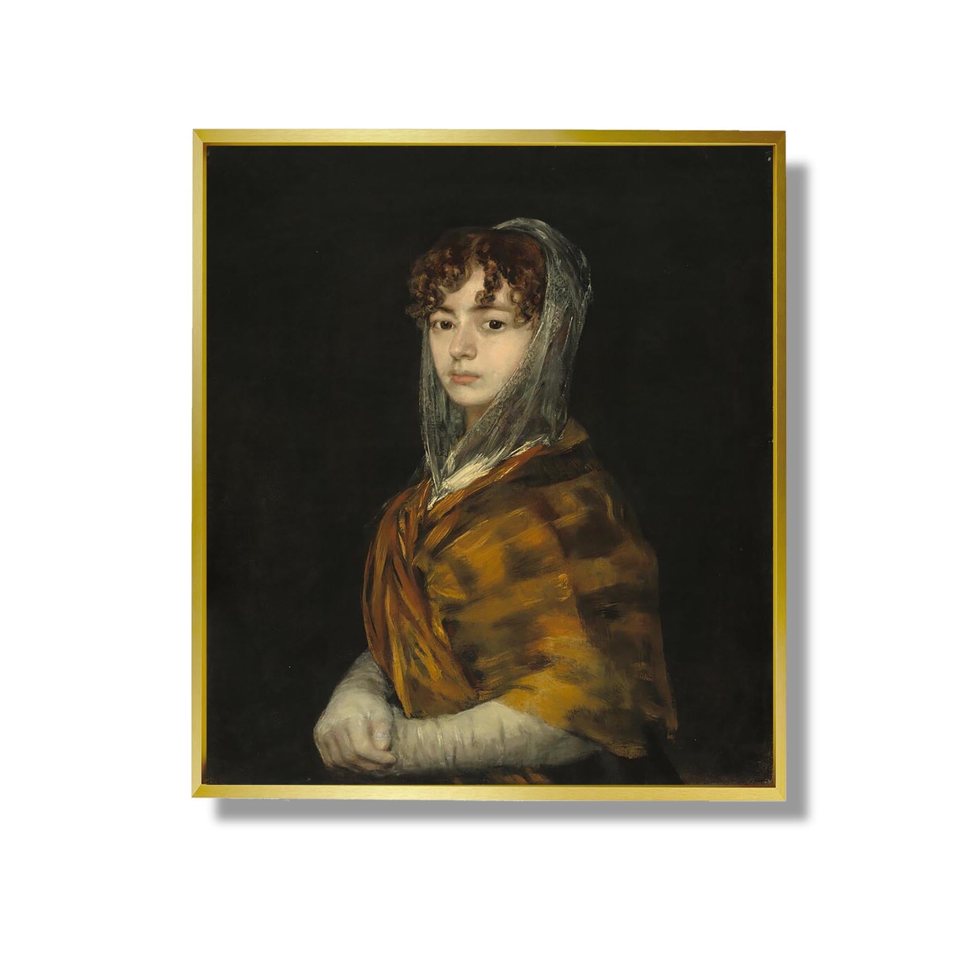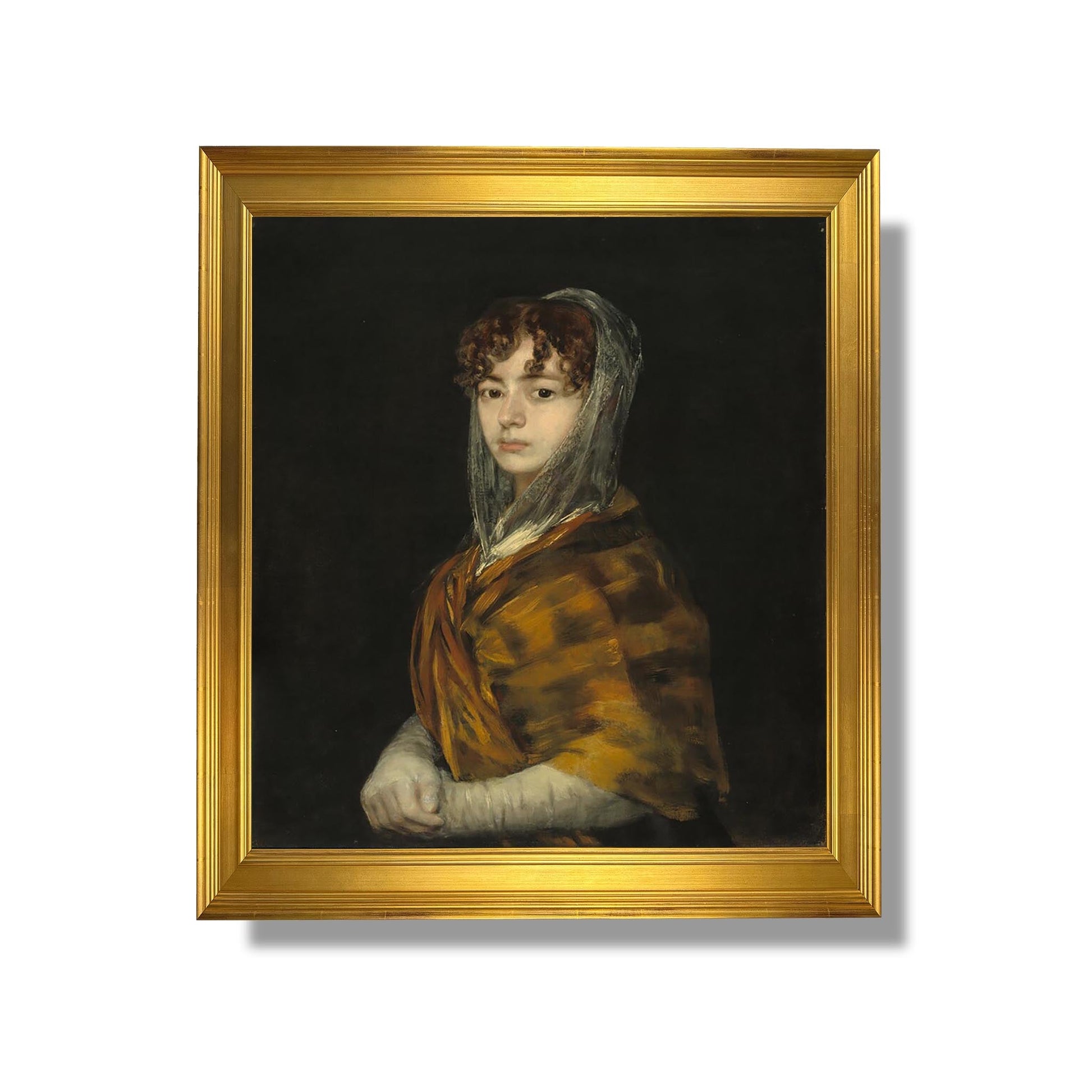 "Señora Sabasa Garcia" est une œuvre emblématique de Francisco de Goya, peinte en 1786. Ce portrait représente une femme de la haute société espagnole, vêtue d'une robe richement ornée, qui incarne à la fois la dignité et la complexité de son époque. Goya, maître du clair-obscur, utilise des jeux de lumière pour accentuer les traits du visage et la texture des vêtements, créant une atmosphère intimiste. Ce tableau illustre non seulement le talent de Goya pour capturer la psychologie de ses sujets, mais aussi son rôle en tant que chroniqueur de la société espagnole du XVIIIe siècle.