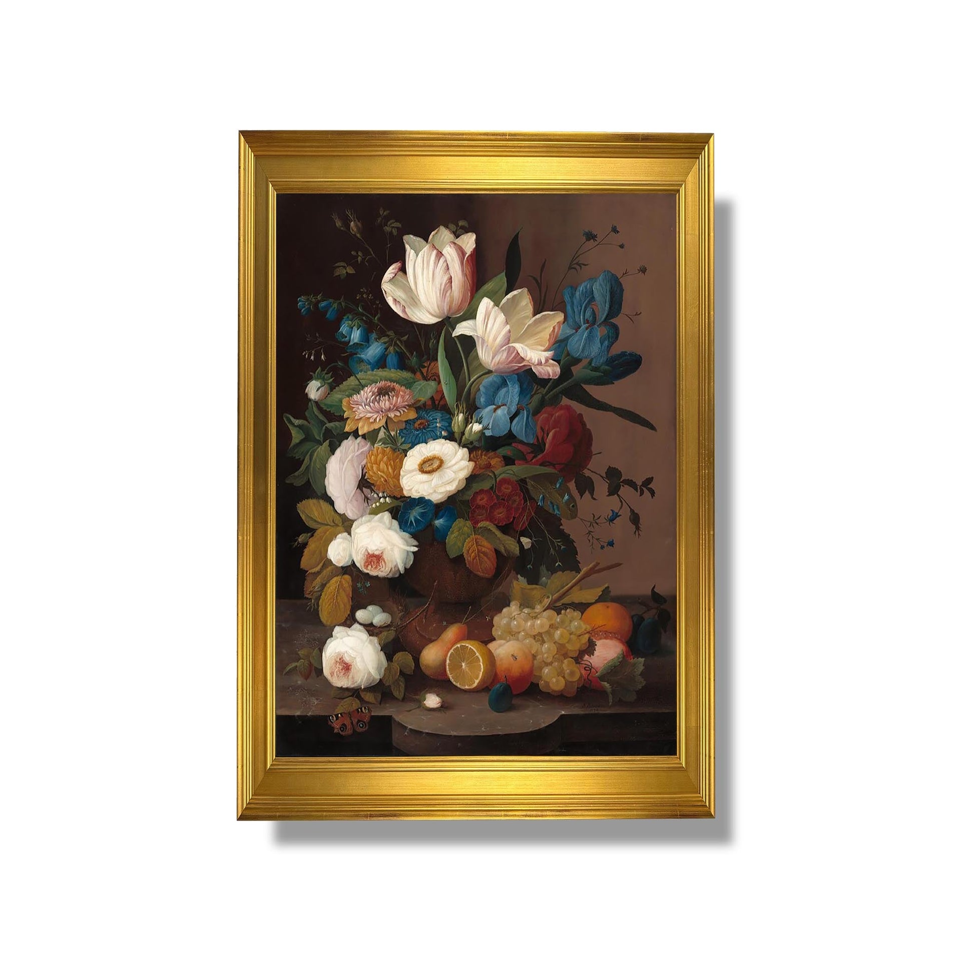 Severin Roesen, peintre du XIXe siècle, est reconnu pour ses natures mortes vibrantes, notamment "Still Life, Flowers, and Fruit". Cette œuvre emblématique illustre son talent pour capturer la beauté éphémère de la nature. Roesen utilise une palette riche et lumineuse, mettant en valeur des fleurs éclatantes et des fruits juteux, symboles de prospérité et de vie. La composition harmonieuse et le jeu de lumière révèlent son habileté technique, tandis que les détails minutieux invitent à une contemplation profonde. Son art transcende le simple réalisme, évoquant une célébration de la beauté et de la fragilité de la vie.