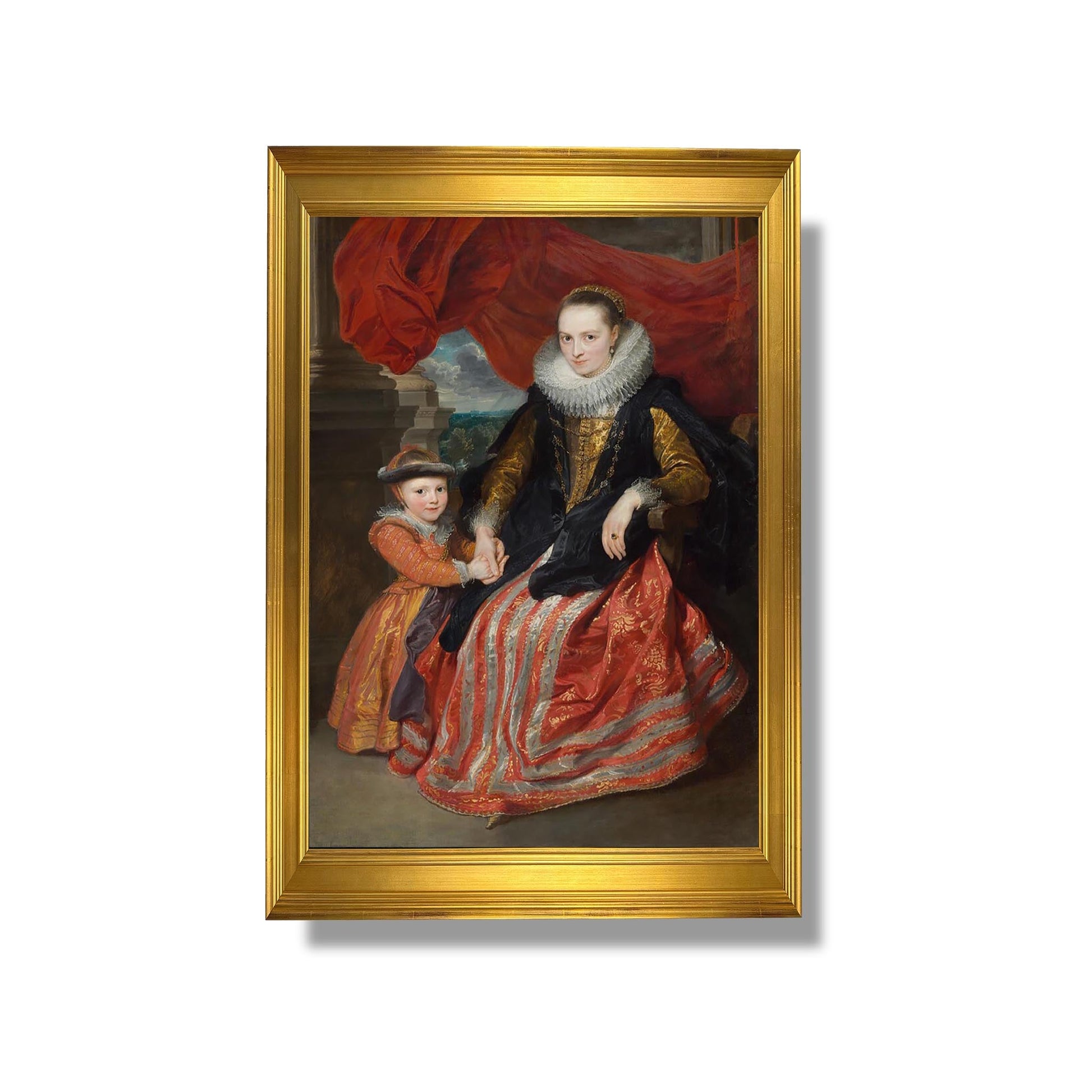 "Susanna Fourment and Her Daughter" est une œuvre emblématique de Sir Anthony van Dyck, réalisée vers 1635. Ce tableau met en lumière la beauté et l'intimité d'une mère et de sa fille, capturant un moment tendre et affectueux. Van Dyck, maître du portrait, utilise une palette douce et des jeux de lumière pour accentuer les expressions délicates des personnages. La composition, équilibrée et harmonieuse, reflète l'élégance de la noblesse flamande. À travers ce tableau, l'artiste explore les thèmes de la maternité et de la féminité, tout en affirmant son style baroque distinctif, alliant réalisme et idéalisation.