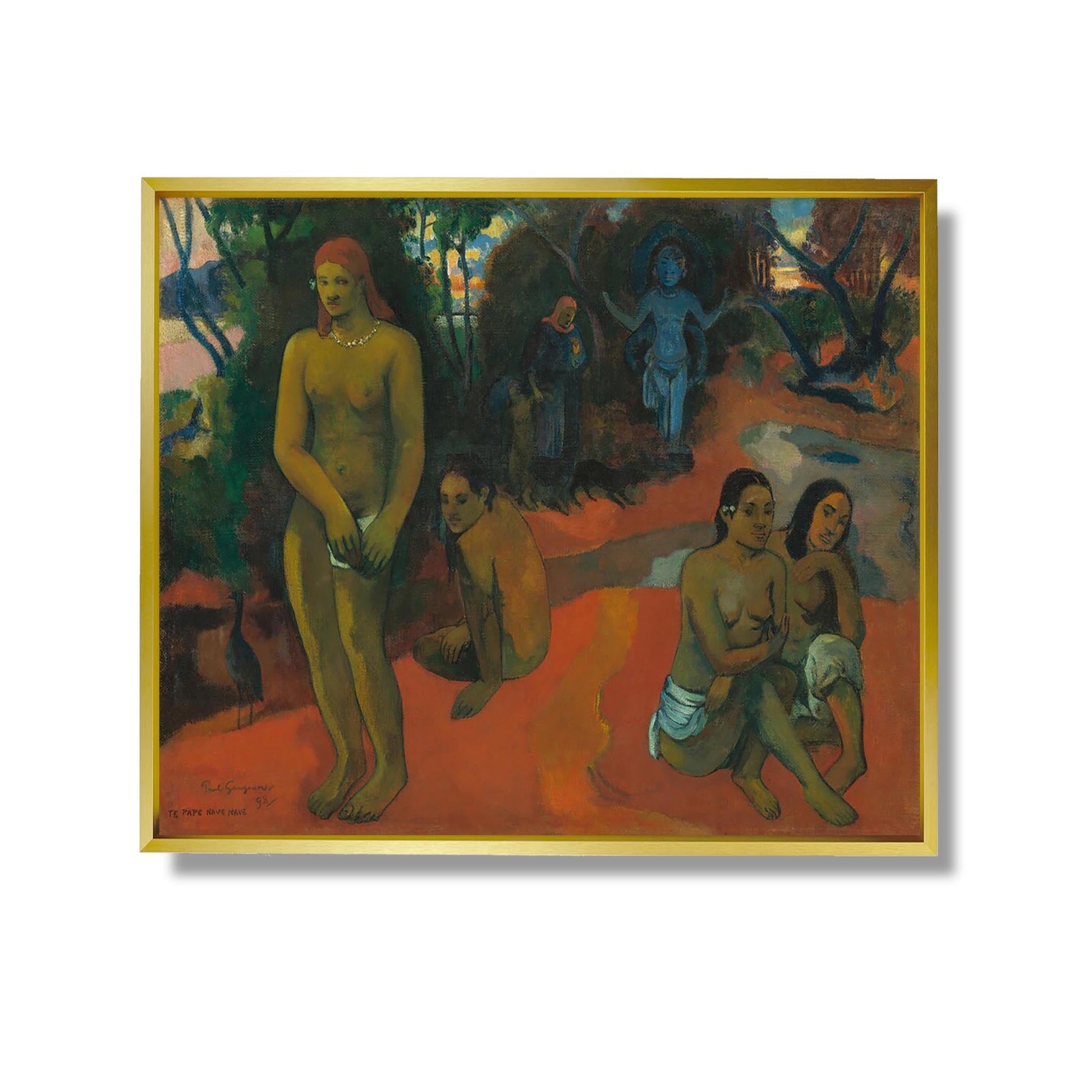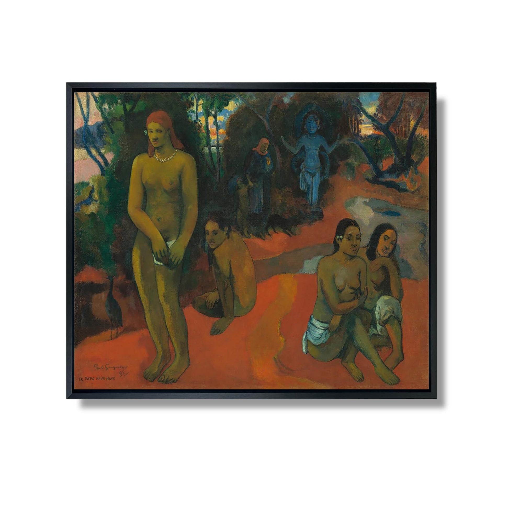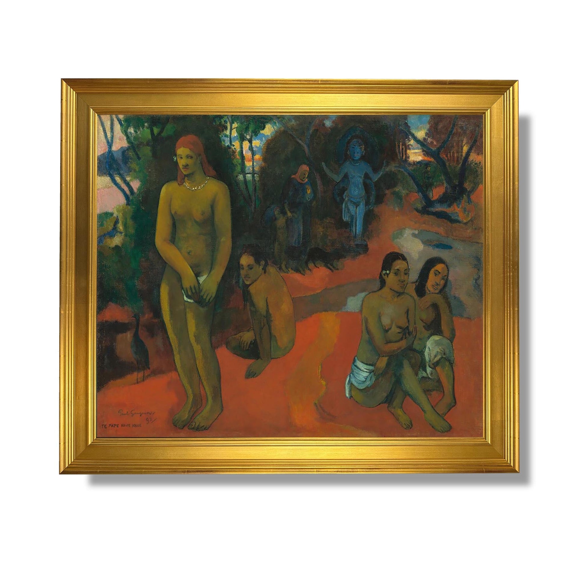 "Te Pape Nave Nave" (Delectable Waters) est une œuvre emblématique de Paul Gauguin, peinte en 1897 lors de son séjour à Tahiti. Cette toile illustre la quête de l'artiste pour une esthétique primitive et spirituelle, loin des conventions européennes. Le tableau représente un paysage luxuriant, où des figures féminines, symboles de la beauté tahitienne, s'épanouissent au milieu de la nature. Les couleurs vives et les formes stylisées témoignent de l'influence du post-impressionnisme. À travers cette œuvre, Gauguin explore des thèmes de sensualité, d'exotisme et de la recherche d'une vie authentique, tout en questionnant les valeurs occidentales.