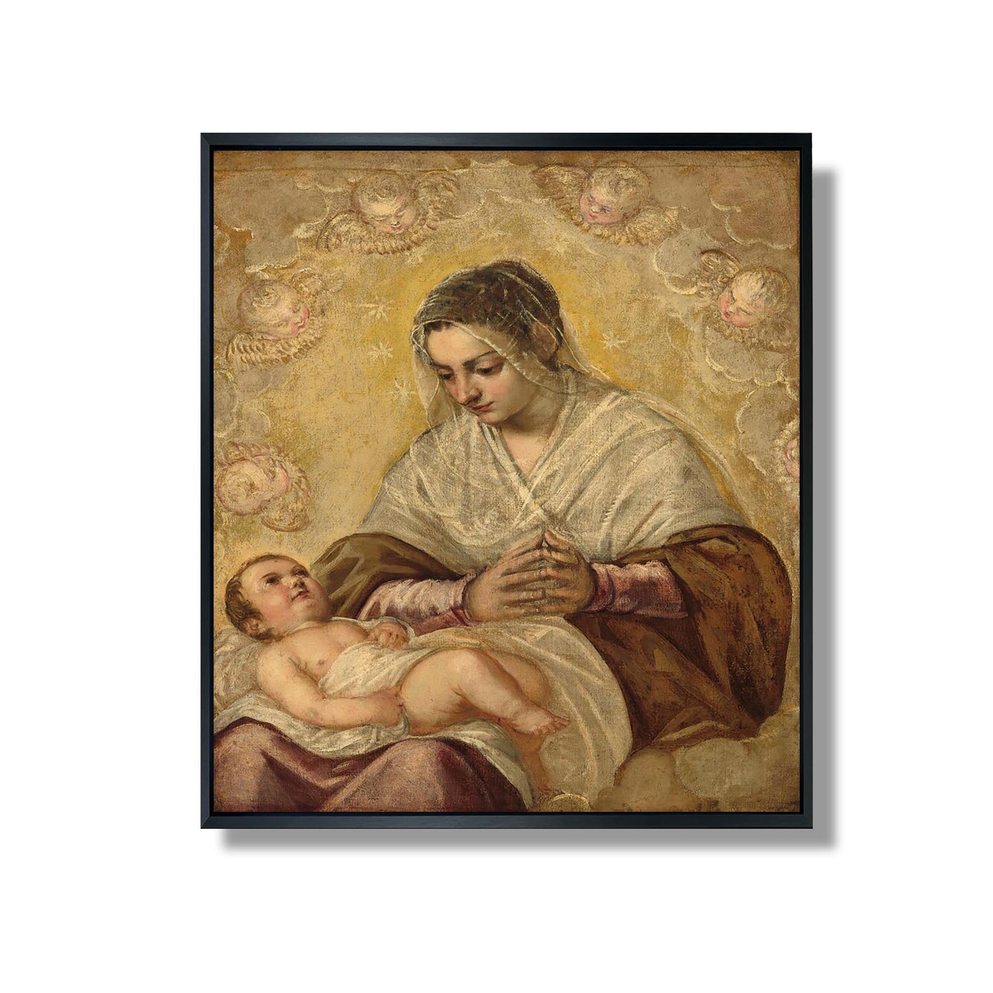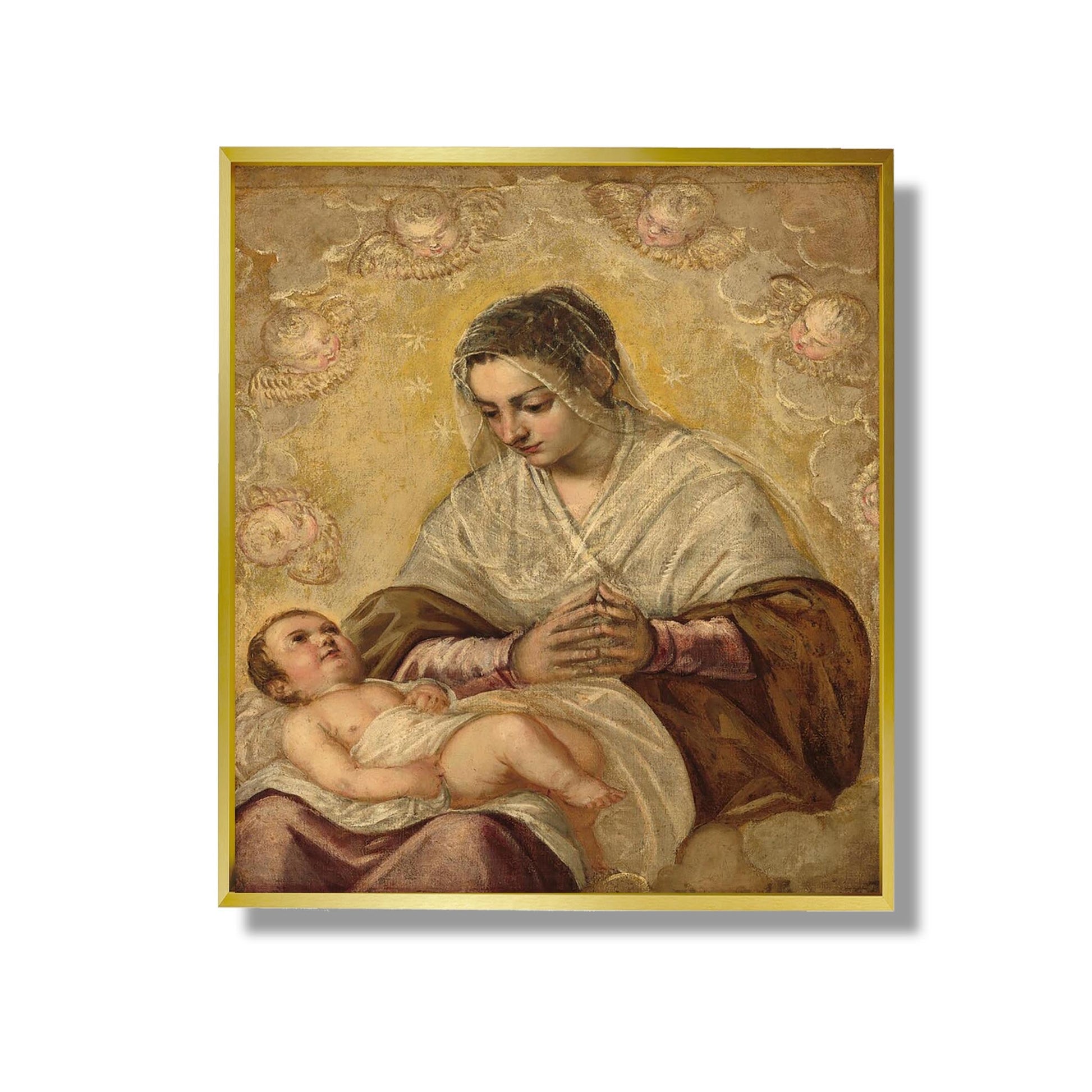 "The Madonna of the Stars" est une œuvre emblématique de Jacopo Tintoretto, réalisée au XVIe siècle. Ce tableau, qui illustre la Vierge Marie entourée d'anges et de saints, se distingue par son dynamisme et sa composition audacieuse. Tintoretto utilise des couleurs vives et des jeux de lumière pour créer une atmosphère céleste, évoquant la transcendance divine. La représentation de la Vierge, à la fois majestueuse et accessible, témoigne de la fusion entre le sacré et l'humain. Cette œuvre incarne le style baroque, caractérisé par son émotion intense et son mouvement, faisant de Tintoretto un maître incontesté de la peinture italienne.