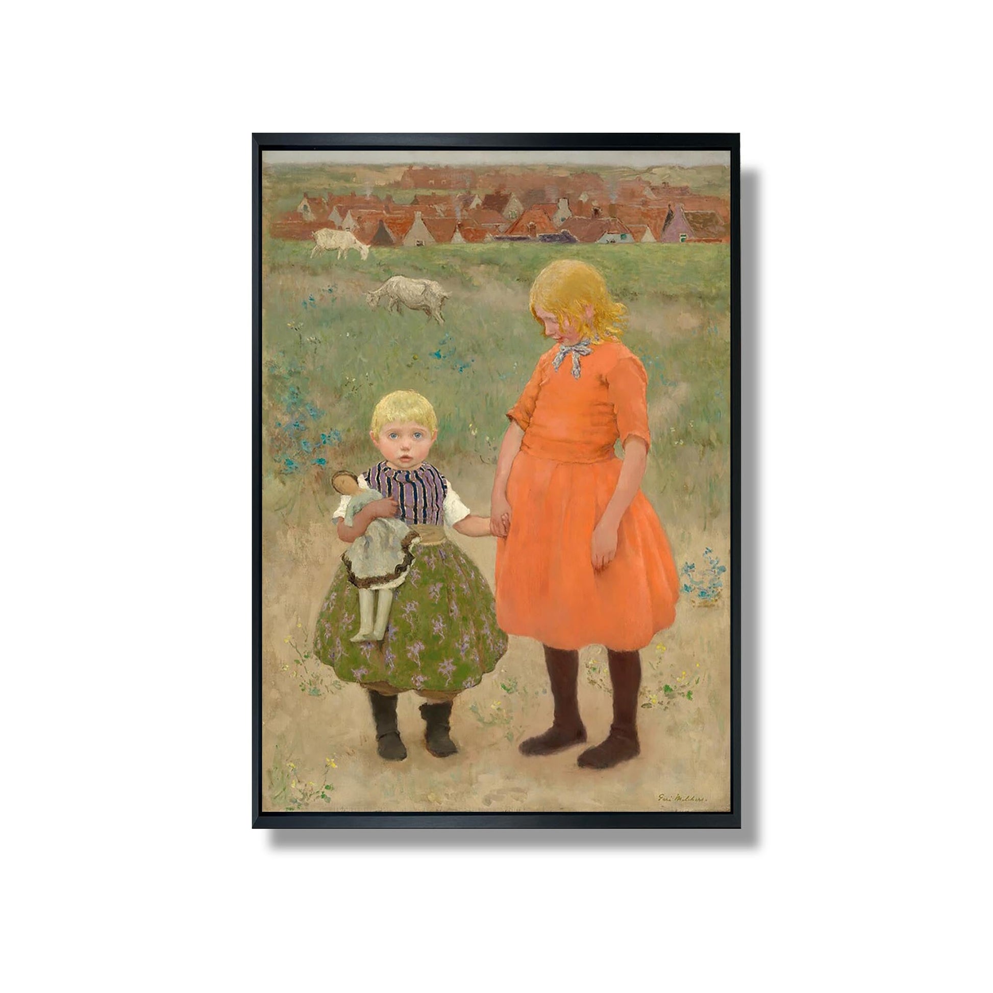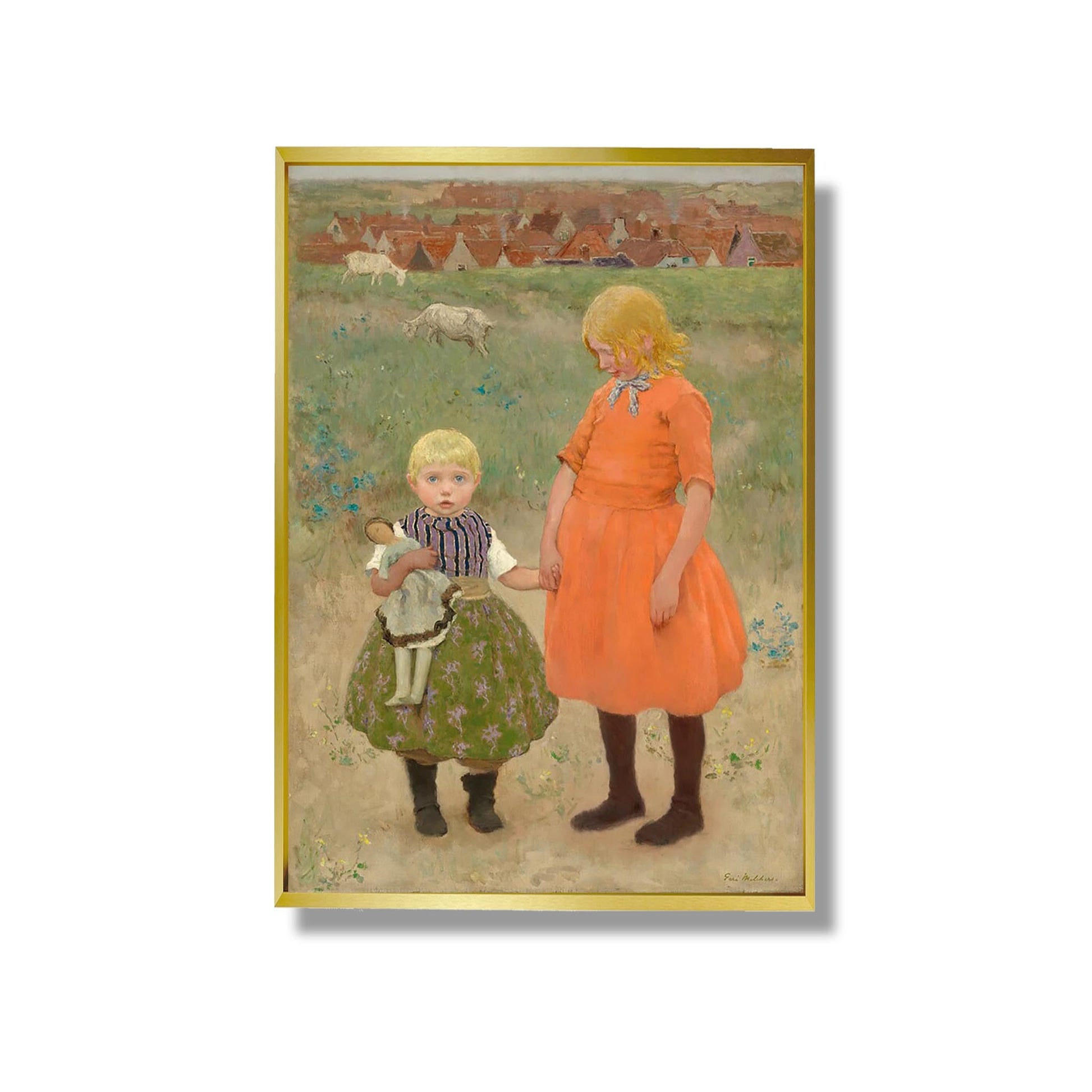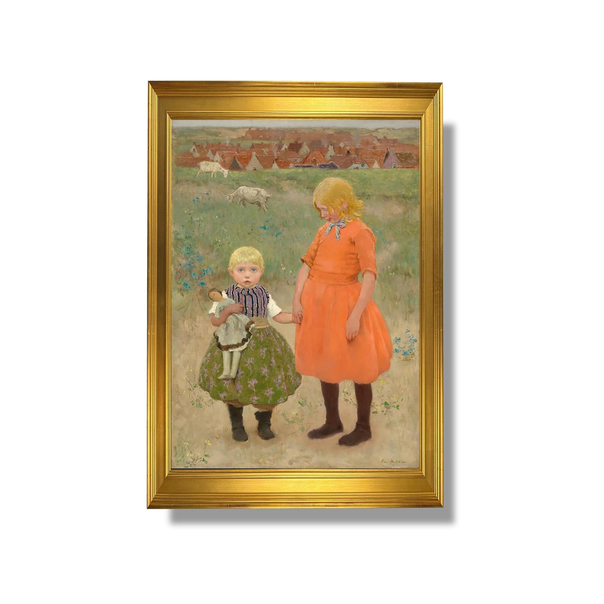 "The Sisters" de Gari Melchers est une œuvre emblématique qui capture l'intimité et la complicité entre deux jeunes filles. Peinte en 1910, cette toile illustre le talent de Melchers pour représenter la lumière et les textures, créant une atmosphère douce et chaleureuse. Les sœurs, vêtues de robes délicates, sont assises dans un jardin luxuriant, entourées de fleurs éclatantes. Leurs expressions, à la fois joyeuses et contemplatives, évoquent une innocence perdue et une connexion profonde. Cette œuvre témoigne de l'habileté de Melchers à immortaliser des moments simples de la vie, tout en explorant les thèmes de la famille et de l'enfance.