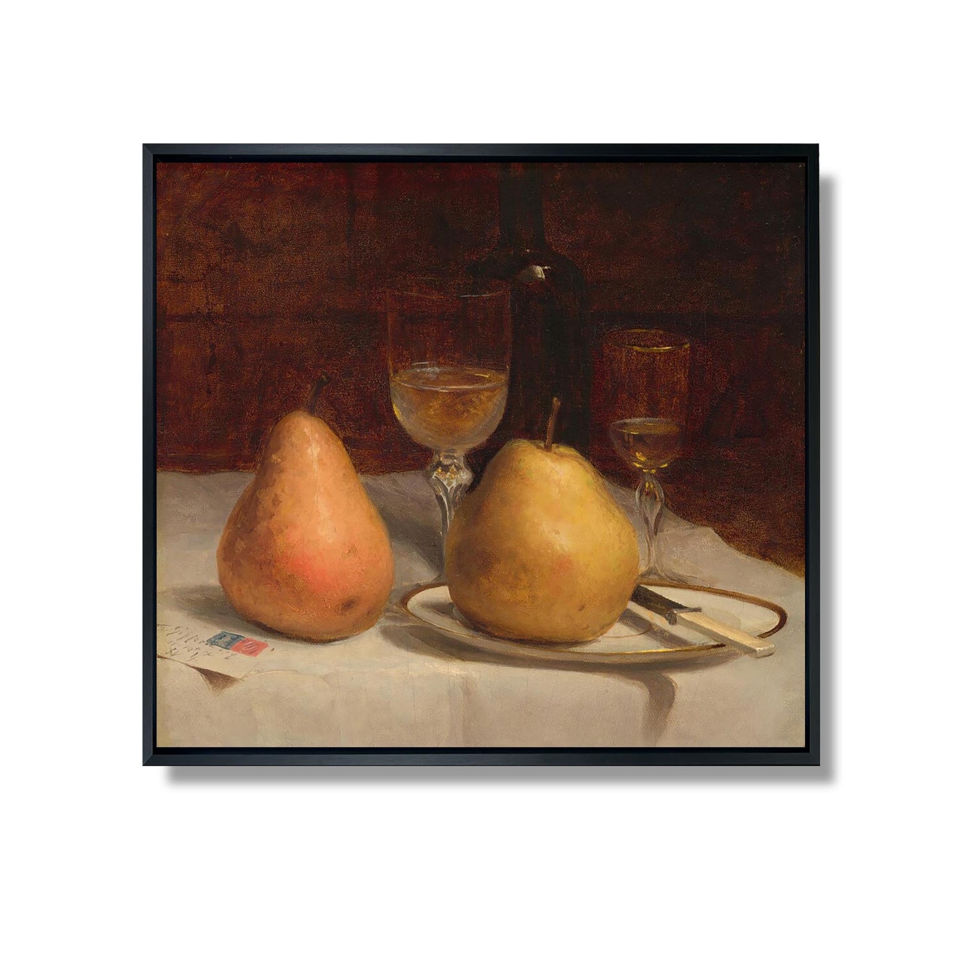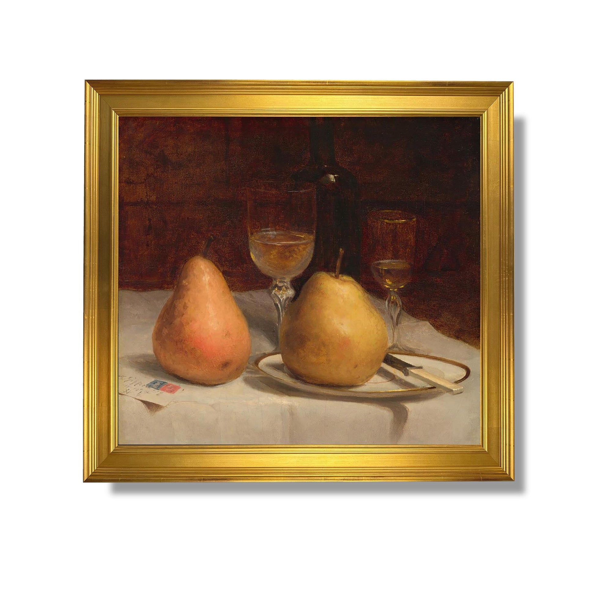 "Two Pears on a Tabletop" de Sanford Robinson Gifford est une œuvre emblématique du mouvement américain du paysage du XIXe siècle. Réalisée en 1870, cette nature morte met en avant deux poires délicatement posées sur une table, entourées d'une lumière douce et chaleureuse. Gifford, connu pour sa maîtrise de la lumière et de la couleur, crée une atmosphère intimiste et contemplative. Les poires, symboles de la beauté éphémère, invitent à la réflexion sur la nature et le passage du temps. Cette œuvre illustre parfaitement l'harmonie entre la nature et l'art, caractéristique du style de Gifford.
