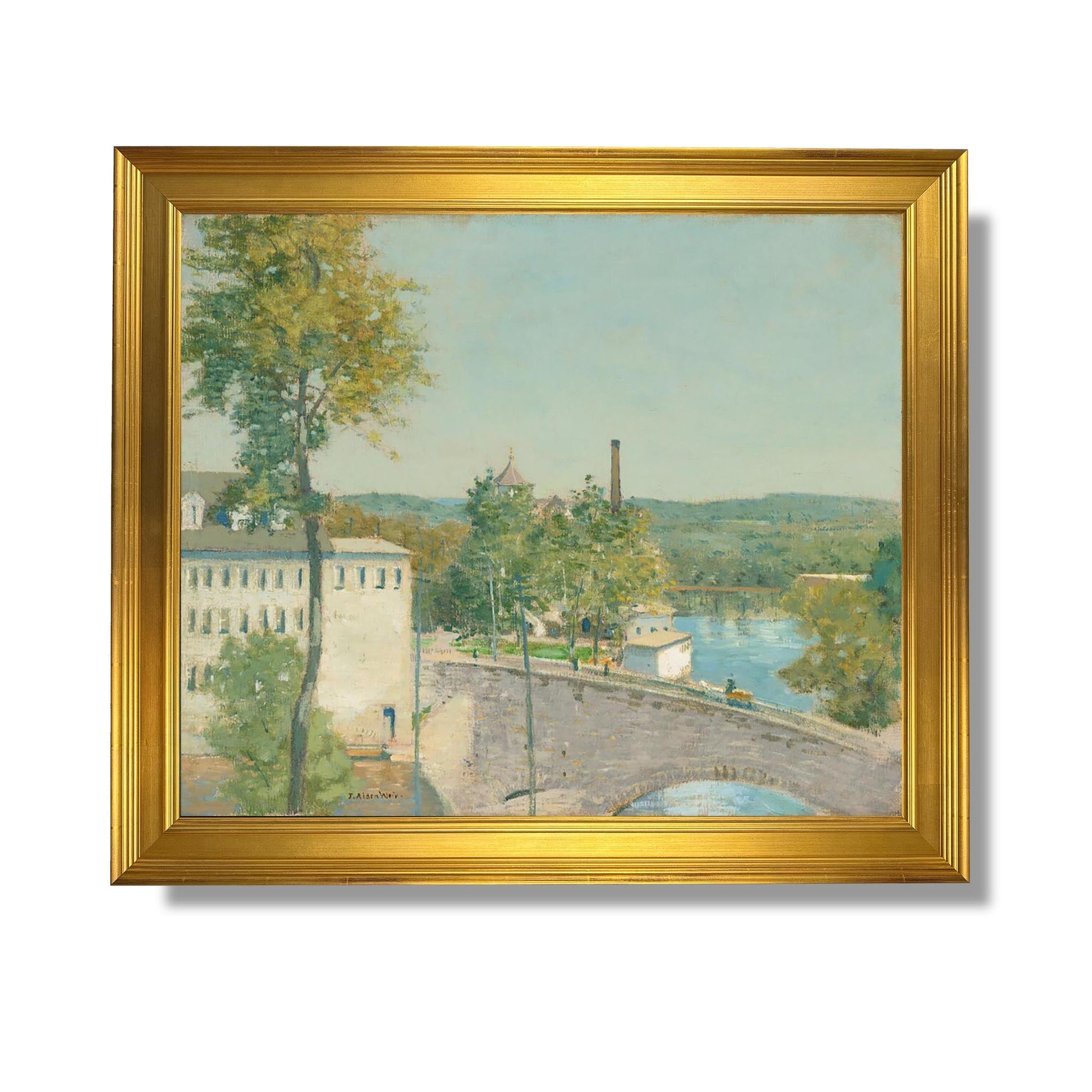 Julian Alden Weir, peintre américain du XIXe siècle, a capturé l'essence de l'industrialisation à travers son œuvre "U.S. Thread Company Mills, Willimantic, Connecticut". Cette toile illustre la transformation du paysage américain, où l'industrie textile émerge comme symbole de progrès. Weir, membre du mouvement impressionniste, utilise des couleurs vives et des coups de pinceau dynamiques pour représenter les bâtiments des usines et l'activité humaine qui les entoure. Son tableau évoque à la fois la beauté et la dure réalité de cette époque, témoignant de l'harmonie entre nature et industrie.