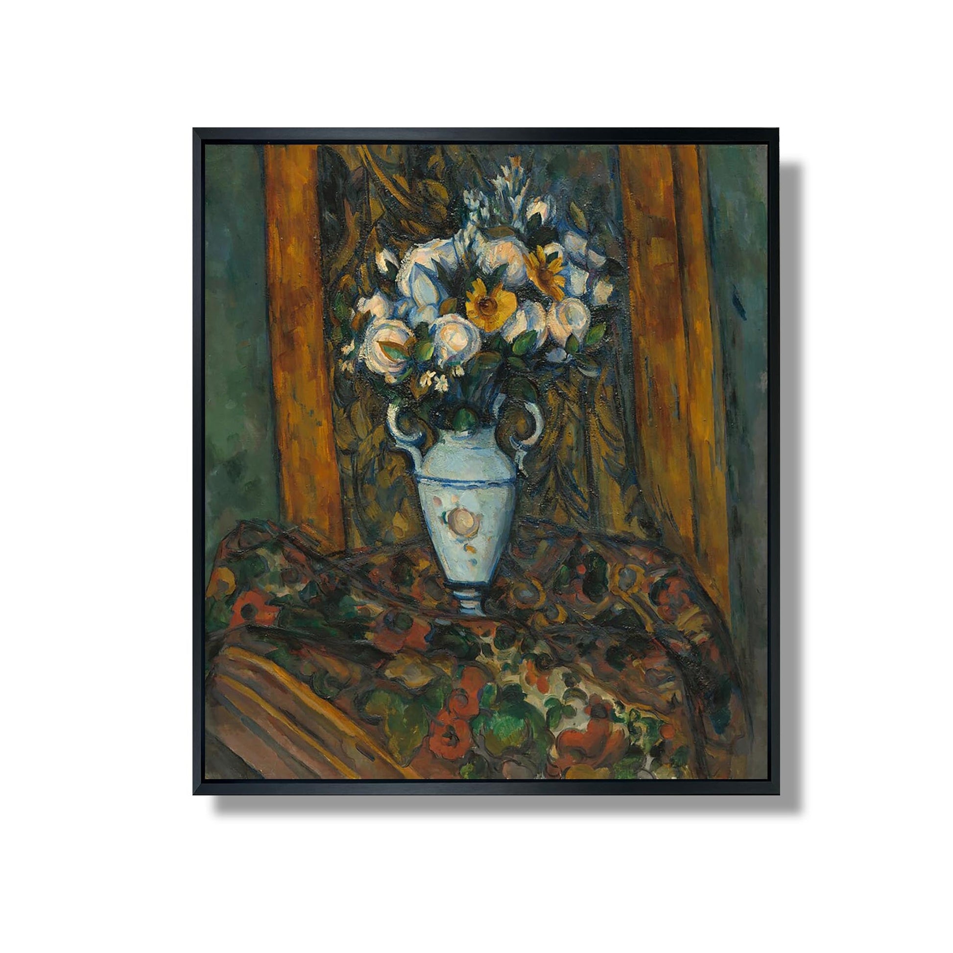 "Vase de Fleurs" est une œuvre emblématique de Paul Cézanne, réalisée entre 1890 et 1895. Ce tableau illustre la maîtrise de l'artiste dans la représentation des natures mortes, où il fusionne forme et couleur avec une approche unique. Les fleurs, disposées dans un vase, sont rendues avec des touches de pinceau distinctes, créant une texture vibrante. Cézanne joue avec la lumière et l'ombre, donnant une profondeur à la composition. Cette œuvre témoigne de son exploration des volumes et de la perspective, préfigurant les mouvements modernes. Elle incarne l'harmonie entre la simplicité des objets et la complexité de leur perception.